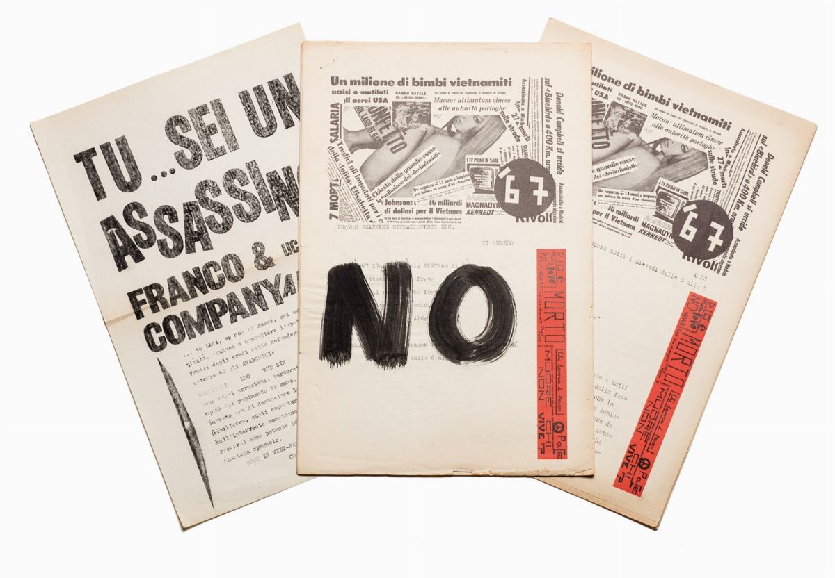 Insieme composto da un volantino, titolo: "Tu...sei un assassino? Franco & Company uccide ancora!"; e da tre fanzine ciclostilate datate 1967, tutte realizzate in redazione alla Barcaccia di Piazza di Spagna tutti i Giovedì dalle 6 alle 7.