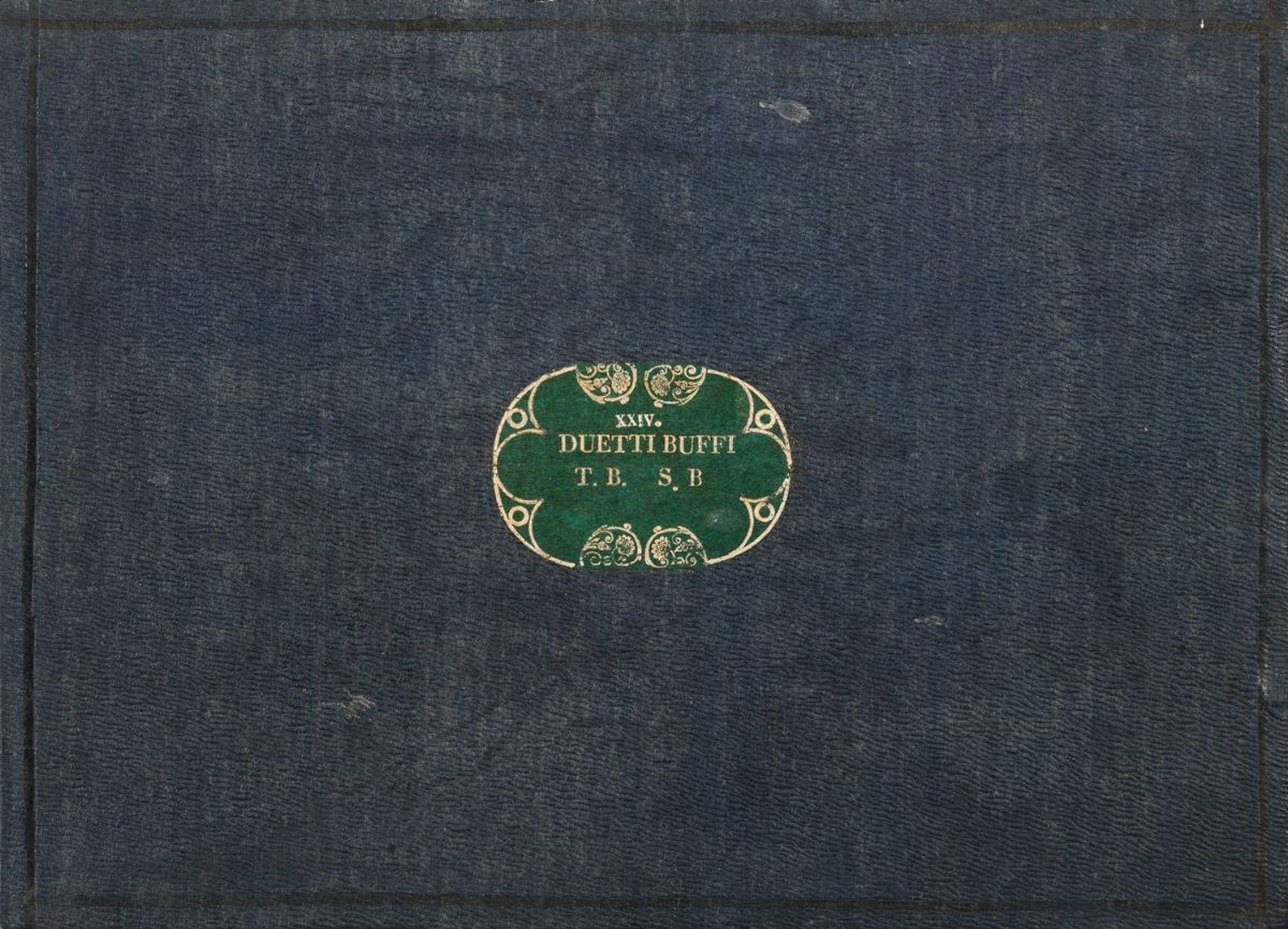 Due album musicali oblunghi in tela blu con inserti in pelle verde, recanti i titoli Duetti e Duetti Buffi al centro dei piatti, contenenti partiture a stampa di duetti, perlopiù stampati a Milano da Ricordi.