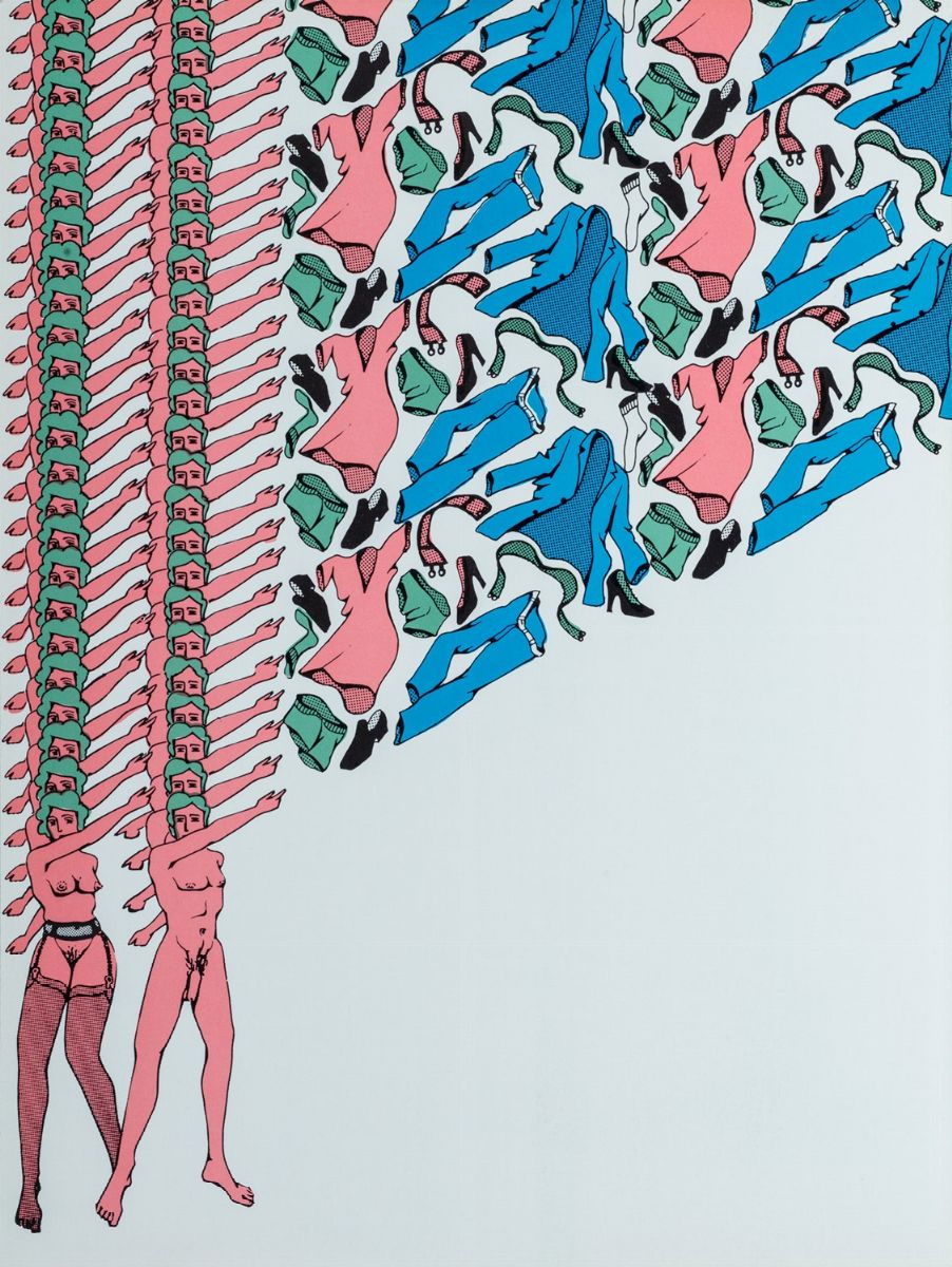 Edizione originale rara in esemplare arricchito da dedica manoscritta. Thomas Bayrle fu un artista di rilievo all'interno del movimento europeo della Pop Art degli anni '60 e '70. L'opera contiene una serie di illustrazioni che Bayrle definisce come delle "superforme", ogni immagine è costruita con le stesse forme ripetute ma di formato più piccolo. Questa serie ripetitiva di pattern comprende anche scene di nudo e coppie che copulano.