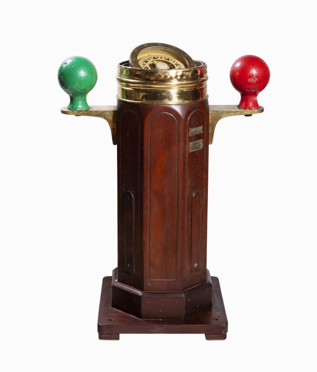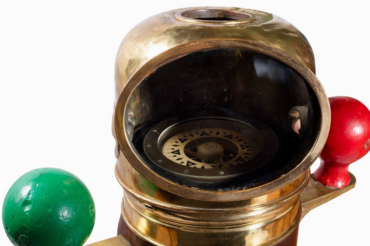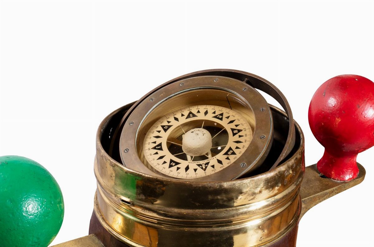 [sec. XX]. Con bussola a liquido a sospensione cardanica F. Fuselli, Genova, armadietto ottagonale in teak, calotta semicircolare con oblò di lettura, cm. 130 x 80.