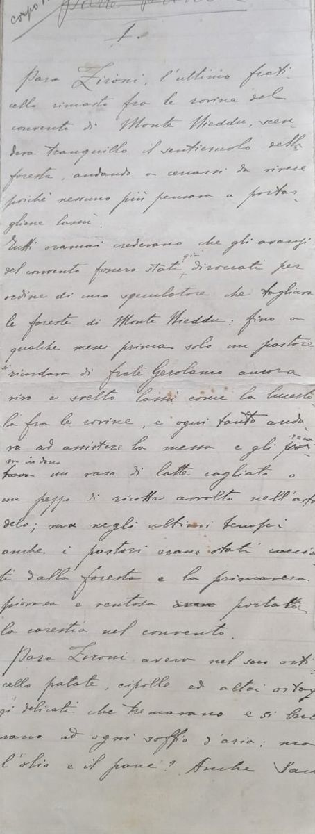 Pure lei avrà indossato un abito elegante quel giorno, quella sera a cena tra Reali, ma si fatica a immaginarla a suo agio in un tale consesso: quel volto tondo, severo, mai incline sembrerebbe a facili sorrisi, antico e scuro come la sua terra, si affaccia dalla tante foto in bianco e nero dell’archivio, in pose diverse ma sempre accomunate da un grandissimo senso di dignità e antico splendore. Una piccola donna, proveniente da un piccolo paese sprofondato nel Mediterraneo, nella più aspra e selvaggia isola nel Mare Nostrum, di colpo si trova al centro del mondo, in una notte di dicembre del 1927. Di certo aveva gli occhi di mezzo mondo puntati su di lei, da quando nel novembre del 1927 aveva appreso della vittoria del Premio Nobel della Letteratura. E su di lei si posavano anche gli occhi amorevoli del suo dolce marito, quel “Palmirino” Madesani che qui compare in splendide e struggenti lettere d’amore. Un universo di emozioni, sensazioni, passioni e pensieri che aveva convinto anche gli austeri giurati del Nobel, gente che mai aveva visto o sentito forse parlare della Sardegna, di Nuoro, di una piccola donna sarda dai lineamenti scuri e i tratti arcaici. Grazia Deledda, “per la sua potenza di scrittrice, sostenuta da un alto ideale, che ritrae in forme plastiche la vita quale è nella sua appartata isola Natale e che con profondità e con calore tratta problemi di generale interesse umano”. Un commovente biglietto su carta intestata Nobelstiftelsen, trascrive il testo della motivazione del Nobel: forse sarà stato proprio quello letto la notte del 10 dicembre, e gelosamente conservato tra le carte del suo archivio personale. Una motivazione che condensa una vita intera, un percorso letterario sublime, una parabola che avrebbe portato la nostra piccola donna dalle riviste di moda milanesi al più alto riconoscimento che uno scrittore possa desiderare. E di questa parabola umana e artistica questo archivio è fedele e completa testimonianza, raccogliendo documenti, lettere, fotografie e soprattutto manoscritti autografi di in un arco temporale che va dal 1890 circa sino alla morte. Grazia Maria Cosima Damiana fu la quinta di sette figli, di un’agiata famiglia nuorese. Questo le consentì di studiare fino alla IV elementare, per poi essere seguita privatamente da un precettore a casa, come nelle consuetudini dell’epoca. Per il resto fu una vorace autodidatta, che passò dalla letteratura francese a quella russa, senza trascurare il mondo anglosassone. E dunque per niente periferica fu la sua formazione letteraria, fondata sui modelli più alti delle letteratura europea del sec.XIX., ma quella lezione fecondò una scrittura di grande potenza solo a contatto con la mitica – nel senso letterale del termine – dimensione sociale sarda. Eppure in Sardegna Grazia visse relativamente poco, 28 anni a Nuoro, quindi un paio a Cagliari, per poi approdare a Roma dove trascorse i restanti 36 anni della sua vita. Ma la Sardegna, per lei come per molti altri scrittori sardi, è in fondo una condizione esistenziale innaturata, iscritta nel DNA su base quasi genetica. Una Sardegna che diventa serbatoio ideale di temi, emozioni, riflessioni, analisi della condizione umana in chiave etnico-antropologica, ma non solo. Perché Grazia fu donna verista, ma a modo suo. “E’ bensì vero che, negli anni che corrispondono alla sua maggior fioritura, l’acerba fantasia della Deledda si venne per così dire schiarendo e purificando, ma in questo processo di affinamento ebbe un peso preponderante, se mai, l’accresciuta esperienza di vita, donde un modo più distaccato e lucido di investire una torbida materia di impressioni e ricordi. Sta di fatto che quest’arte nasceva da un movimento istintivo e seguitò fino all’ultimo ad essere eccitata e regolata da un istinto, da una sorta di confusa ma prepotente vocazione…Di qui quella sua fedeltà costante alla prima radice emotiva, che è garanzia di autenticità (…).” Così scriveva Natalino Sapegno nella sua Prefazione al Meridiano uscito nel 1971 (pp.XV-XVI), cogliendo bene nel segno la cifra stilistica e morale della Deledda, una sorta di primordiale istinto artistico che si converte e affina nel tempo, senza mai tradire la sua originaria matrice espressiva: che sta tutta nell’adesione al paesaggio, ai personaggi che si muovono in quel paesaggio, alle forze della natura e agli istinti che agitano abbozzati caratteri umani. E la sua forza, interiore ed esteriore, così ben visibile nei ritratti, lei la dichiara apertamente: “…alla mia coscienza di artista, alla superiorità che sento di avere sulla folla, alla potenza occulta che illumina l’anima mia (…) io sono forte, fortissima: guardo in faccia il dolore, la tristezza, ogni viltà, ogni miseria della vita: il giorno in cui sentirei d’esser vile o appena debole mi ucciderei (…)”. Cosi scrive al suo futuro marito, quel Palmiro Madesani che a lei dedicò tutta la sua vita, non solo affettivamente ma anche professionalmente: ed è un capitolo straordinario del presente lotto la corrispondenza amorosa tra Grazie e “Palmirino”, oltre 500 lettere inviate perlopiù a lui ma anche ad altri familiari, che ci rivelano una Grazia meno “letteraria” e più intima, tutta rivolta dentro sé stessa a contemplare il suo animo e il riflesso che ciò produce sui suoi cari. Ma ci sono anche lettere di lavoro, riflessioni sulla sua produzione, sui vari impegni pre e post-Nobel, uno specchio fedele della Deledda colta nel flusso della vita, con la sua naturale e risaputa ritrosia ma anche col suo orgoglio di grande scrittrice giunta all’apice mai possibile per un’artista. Ma entriamo nel corpus di questo archivio, che si configura per la sua vastità come IL PIU’ VASTO INSIEME DI DOCUMENTI E TESTIMONIANZE di e su Grazia Deledda. E questo a partire dagli stessi ambienti in cui visse, perché nel lotto è presente anche la celebre sala da pranzo realizzata per lei negli anni 