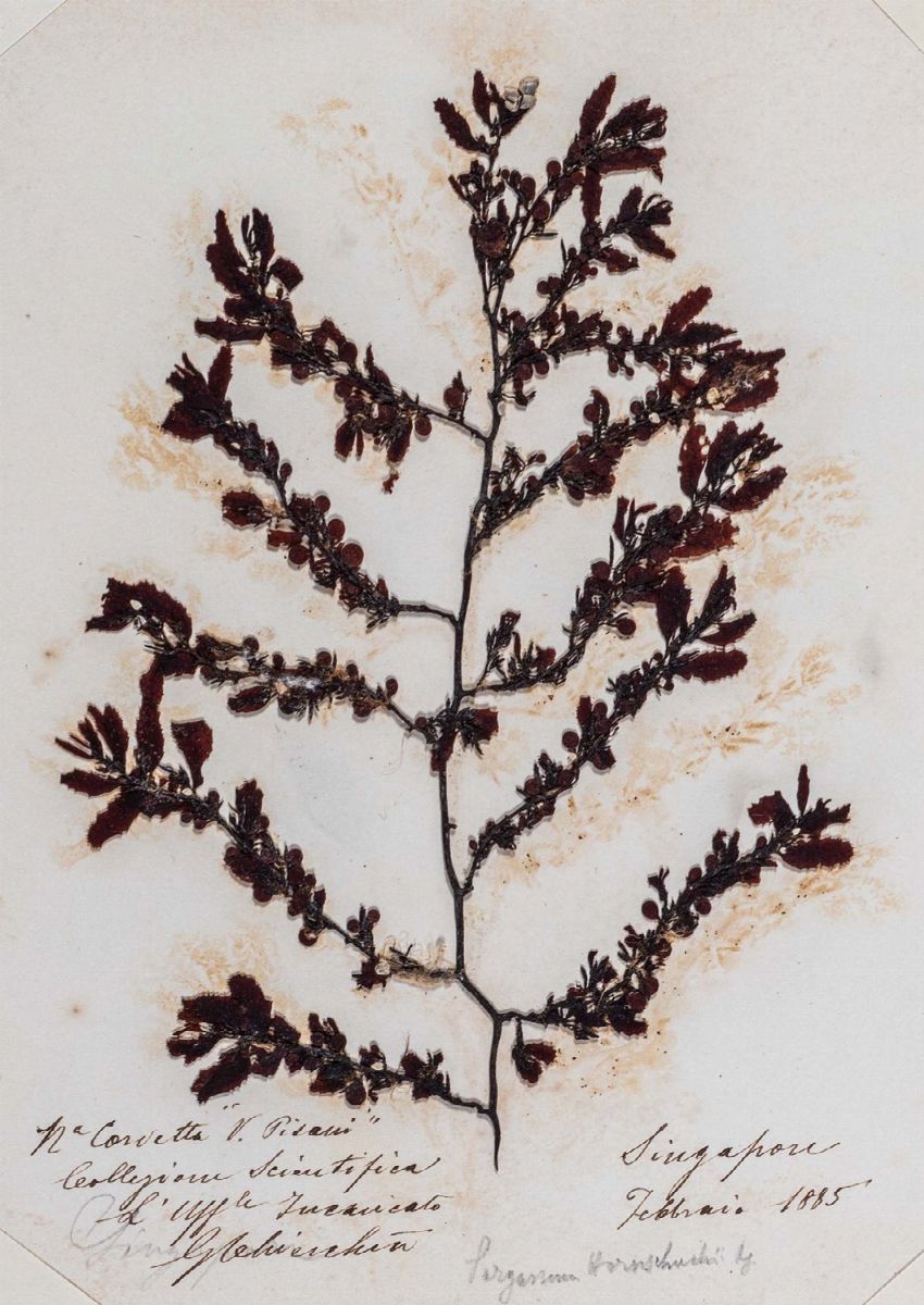 Prezioso erbario algale, utile come strumento per la ricerca sulla biodiversità dellealghe marine. Il presente lavoro venne eseguito per conto del Laboratorio Centrale di Idrobiologia di Roma. La Vettor Pisani è stata una pirocorvetta ad elica della Regia Marina, attiva tra 1869 e 1892. I prelievi vennero effettuati prevalentemente a Callao, in Perù, ma anche in Ecuador. La Vettor Pisani stazionò a Guayaquil per due mesi e mezzo, durante i quali il tenente di vascello Gaetano Chierchia, istruito dal professor Felix Anton Dohrn della stazione Zoologica di Napoli, si occupò della raccolta e conservazione dei campioni zoologici.