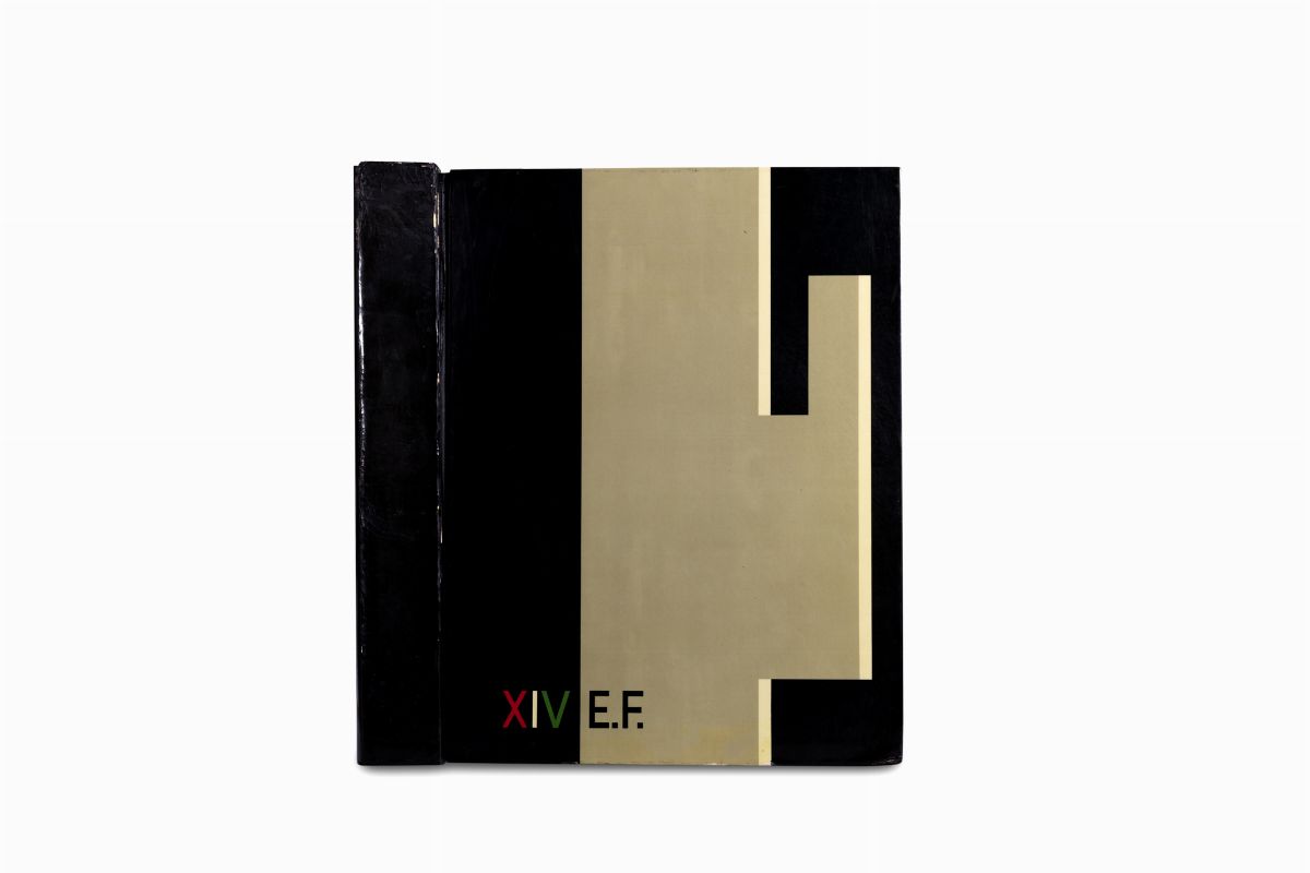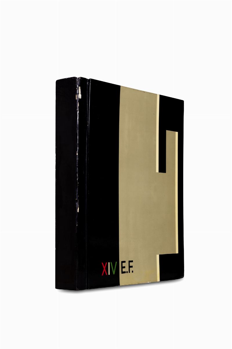 Milano, Alfieri e Lacroix, 1937. In 2°. 4 illustrate da fotografie anche a piena pagina, da 7 tavv. a colori e da 5 in bianco e nero, tutte su cartone, legatura editoriale in cartone rigido rivestito in celluloide nera con immagine di un grande fascio stilizzato in grigio, data scritta in bianco, rosso, nera, custodia nera, restauri al dorso.