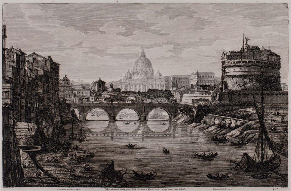 Veduta generale della gran Mole Adriana, e Ponte Elio... in oggi Ponte e Castel S. Angelo, 1823