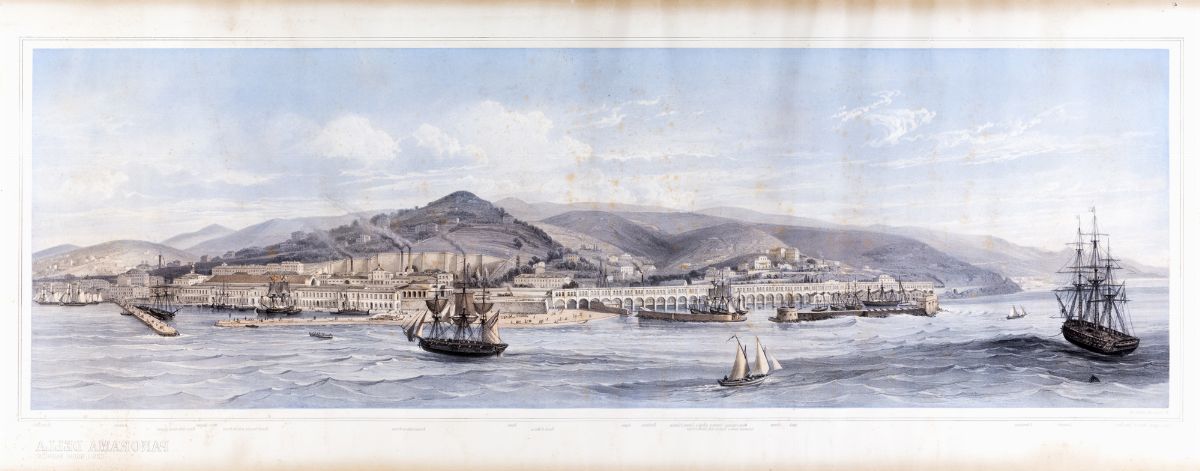 Panorama della città di Trieste con i nuovi fabbricati della strada ferrata, 1800