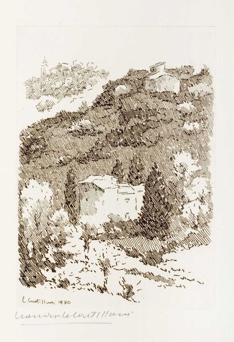 Verona, Franco Riva, 1963. In 2°. Con 1 acquaforte in bianco e nero a doppia pagina firmata e numerata di Guttuso, brossura in cartoncino con piatto illustrato entro cartellina e custodia in cartoncino, autori impressi in nero al dorso, taglio della custodia parzialmente staccato, lievi difetti. § Valeri, Diego; Castellani, Leonardo, Petit Testament, Verona, Franco Riva, s.d. In 2°. Con 3 acqueforti firmate di Castellani, brossura in cartoncino entro custodia in tela azzurra, qualche alone, lievi difetti § Insieme nel lotto Bulich, Saul; Stoppa, Paolo, Parabole, Verona, Franco Riva, 1962.