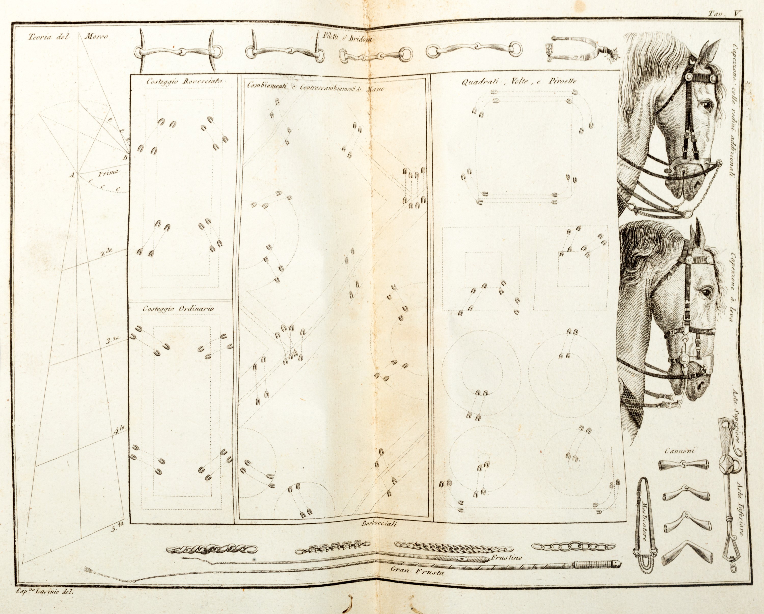 Seconda edizione, ampliata rispetto alla prima stampata a Milano nel 1802, di questo importante trattato sui cavalli e sulla equitazione che raccoglie in modo aggiornato tutte le conoscenze disponibili all'epoca sull'arte equestre.
