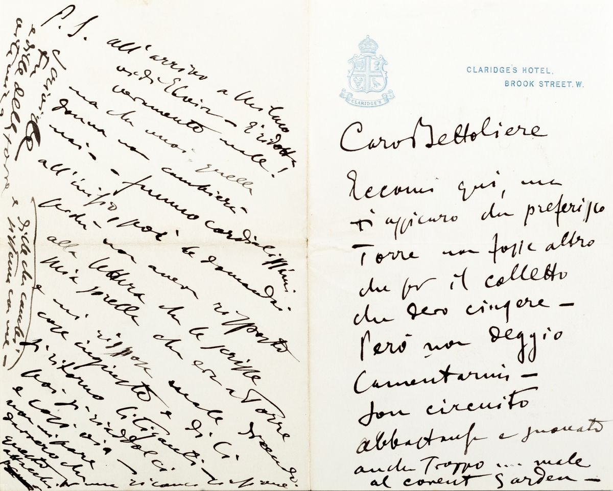Interessantissima lettera molto personale, indirizzata ad uno degli amici più intimi di Puccini, suo compagno di caccia, nonché amministratore della famiglia Ginori-Lisci, proprietaria fra l’altro del Lago di Massaciuccoli. Nella lettera menziona e racconta un episodio relativo ad Elvira Bonturi, compagna e poi moglie di Puccini.