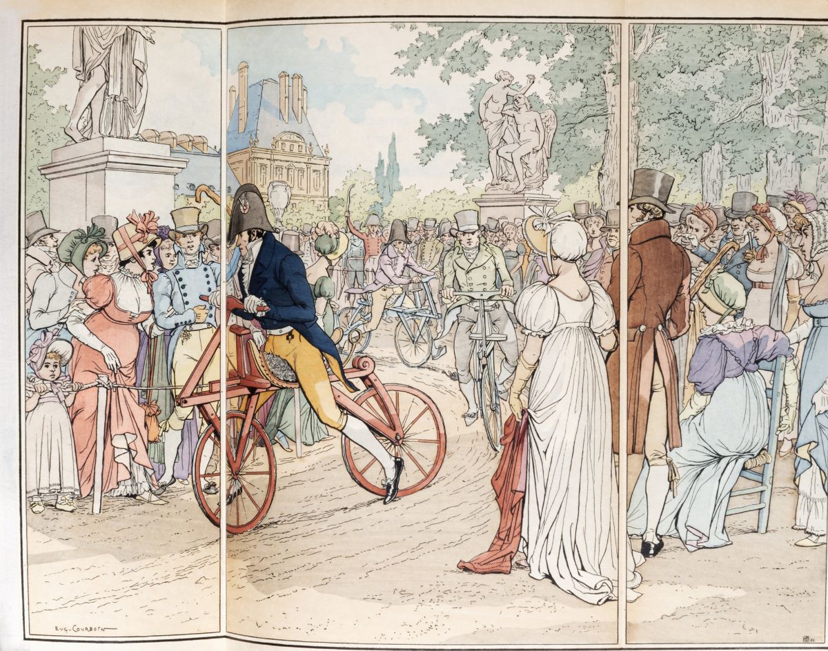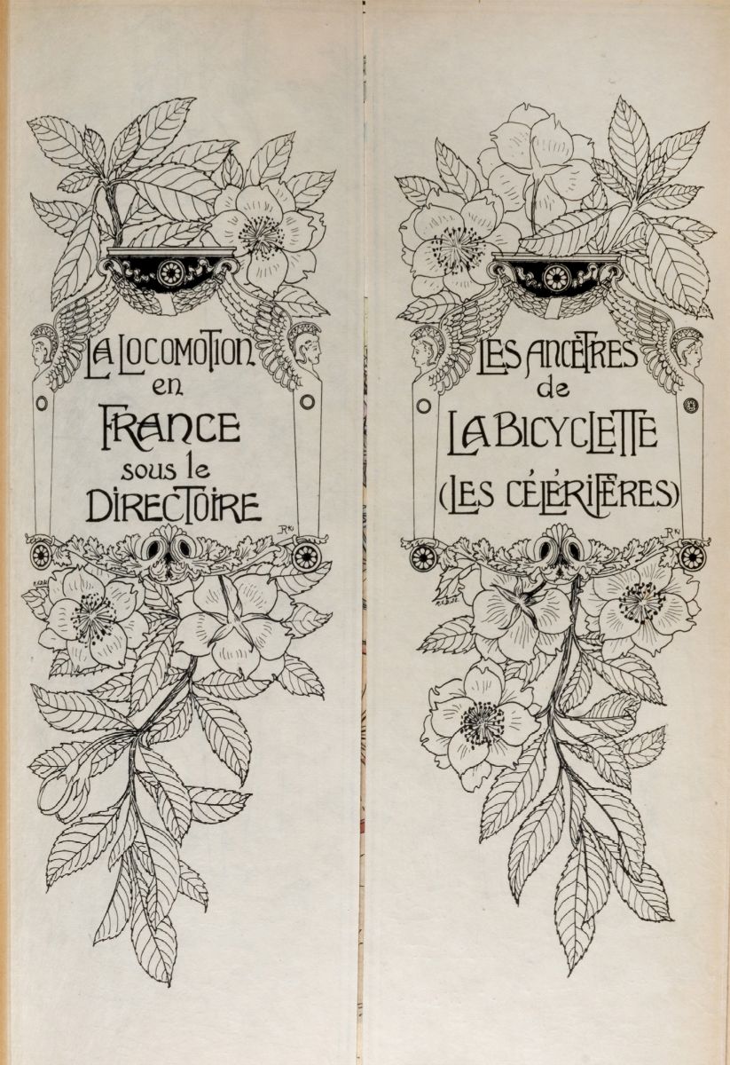 Parigi, Paris, Paul Ollendorff, 1900. In 4°. Frontespizio stampato in rosso e nero, con 20 tavole a doppia pagina "fold out", in due stati, una in bianco e nero ed una a colori diEugène Courboincon 18 riproduzioni di incisioni, di cui 2 a doppia pagina, brossura editoriale illustrata a colori conservata in legatura coeva in mezzo marocchino rosso e carta marmorizzata, dorso a 5 nervi con ai compartimenti autore e titolo e un ferro raffigurante una locomotiva, il tutto impresso in oro, lievi macchie e abrasioni. Nota di possesso al foglio di guardia.