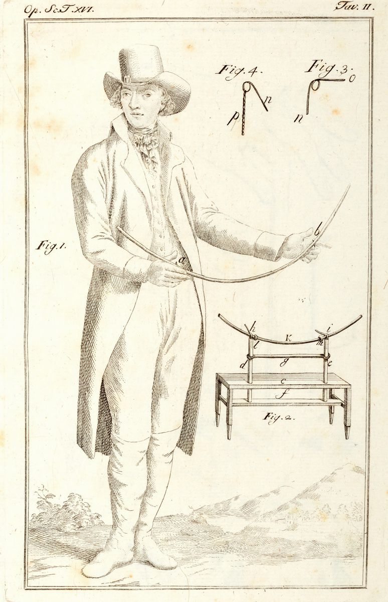 Prima edizione. Raro. Trattato interamente dedicato alla rabdomanzia e all'utilizzo della bacchetta divinatoria, argomenti che l'abate e scienziato Carlo Amoretti (Oneglia, 1741-Milano, 1816) inquadra in una prospettiva "scientifica" che si riallaccia agli studi di Galvani.