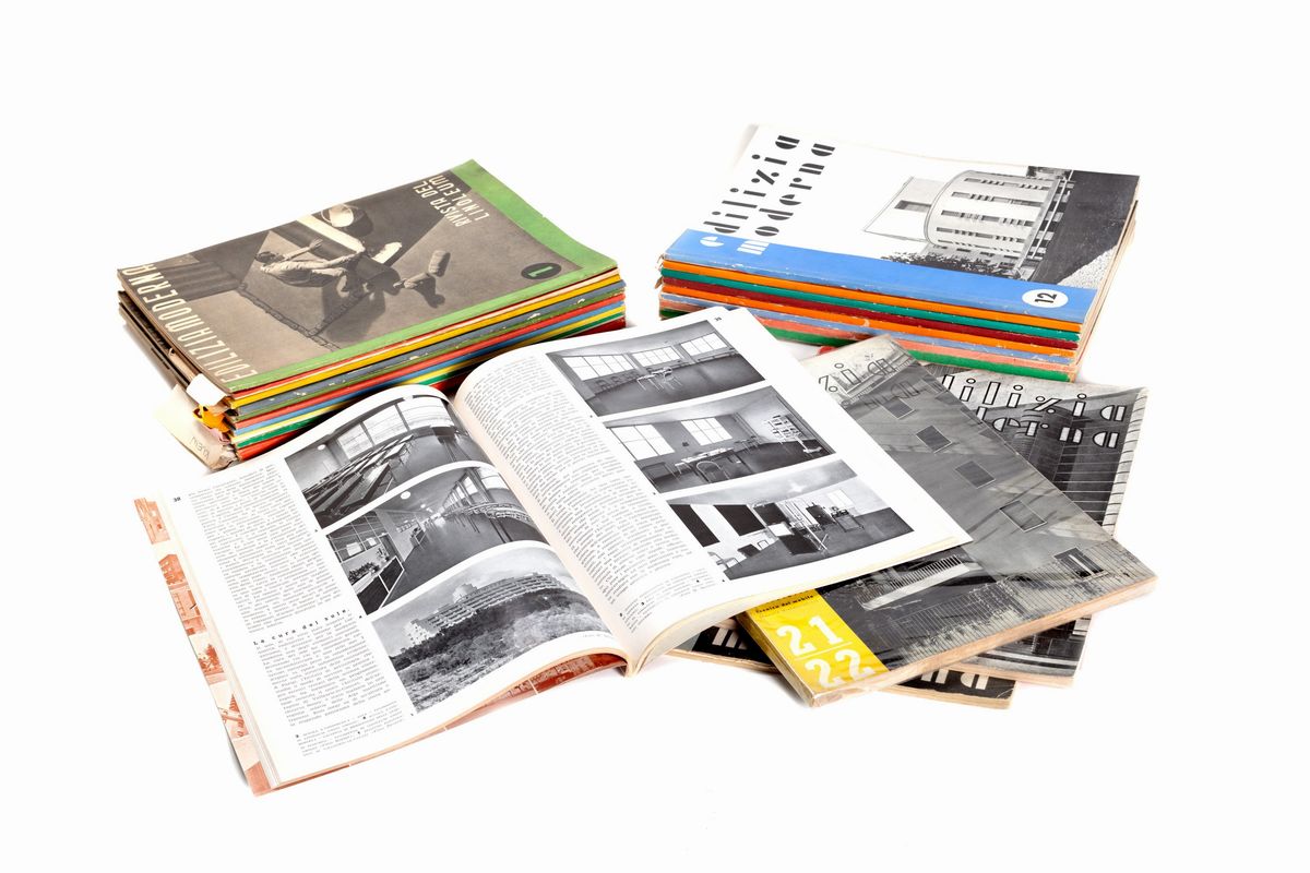 Milano, Edizioni Tecniche Moderne, [stampa: Tipografia G. Rozza di T. Corbella - Milano], dicembre 1948, 29,6x22 cm., brossura, pp. 131 (1), copertina e retro illustrati a colori («Milano. Palazzo Argentina» di Piero Bottoni e Guglielmo Ulrich) , 1 grande tavola a colori f.t. («Piano Regolatore della Città di Milano alla data della pubblicazione 31 maggio 1948»), 2 tavole a colori f.t. («Tecnica del mobile. Arredamento per casa minima - 14), numerosi disegni, prospetti e illustrazioni fotografiche in bianco e nero n.t. Insieme nel lotto altri numeri della rivista.