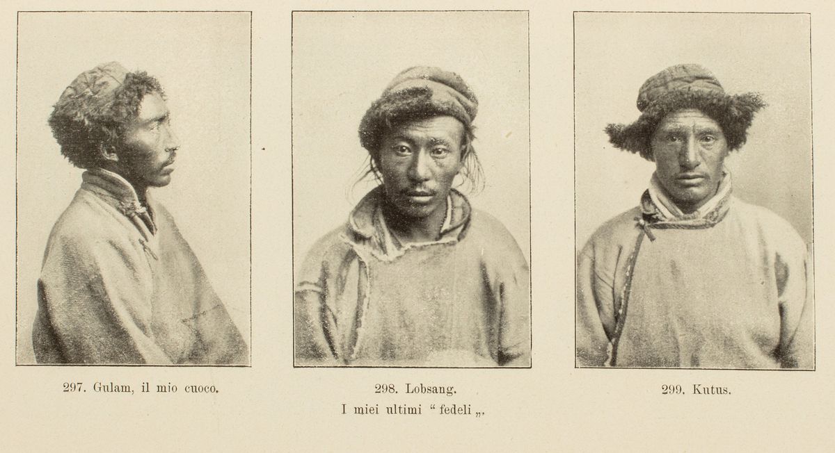 Parigi, De Plon et Nourrit, 1927. In 8°. Tavola in antiporta, 1 carta geografica ripiegata in fine, diverse illustrazioni nel testo, brunitura uniforme, legatura in mezzo marocchino con angoli, autore e titolo impressi in oro al dorso, lievi difetti. Timbro di appartenenza alla carta di guardia. § Insieme nel lotto Foucaux, P. E., Grammaire de la langue tibétaine, Parigi, Imprimerie Imperiale, 1858. In 8°. Legatura in cartoncino, tracce di muffa e Hedin, Sven, Trans- Hilamaja. Scoperte ed avventure nel Tibet, Milano, Treves, 1910. In 8°. (solo vol II).