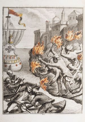 Venezia, Francesco Pitteri, 1759. In 4°. Vignetta calcografica al frontespizio, 10 belle tavole fuori testo ad apertura dei 10 canti disegnate da Pasquali e incise da Sardi, legatura coeva in piena pergamena con titolo al dorso su tassello rosso.
