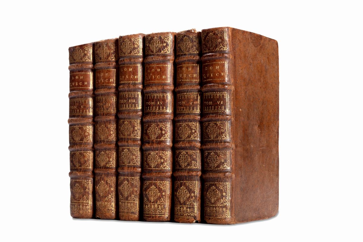 Parigi, Compagnie des Libraires, 1713. In 12°. 6 voll. Con 5 (di 6) antiporte e 52 tavole a piena pagina incise in rame, qualche sporadica fioritura e lieve alone, legatura coeva in pelle, titolo e tomo entro tasselli al dorso a 5 nervi con fregi in oro, lievi difetti. Ex libris cartaceo ai contropiatti, firma di appartenenza ai frontespizi.