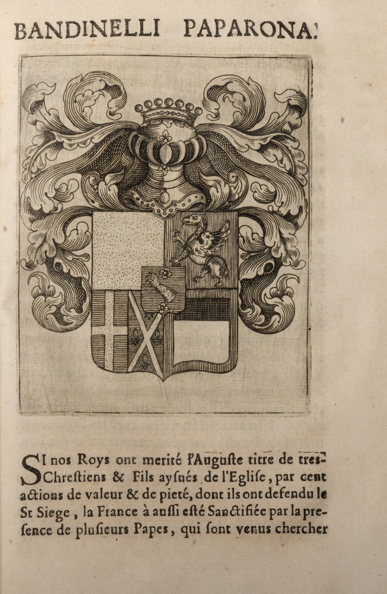 Arles, Francois Mercier, 1658. In 4°. Bella antiporta figurata e 39 grandi stemmi incisi in rame nel testo, rare e lievi fioriture, legatura del sec. XIX in mezza pergamena con ancoli e carta marmorizzata, tassello al dorso con titolo in oro. Ex libris cartaceo al contropiatto.