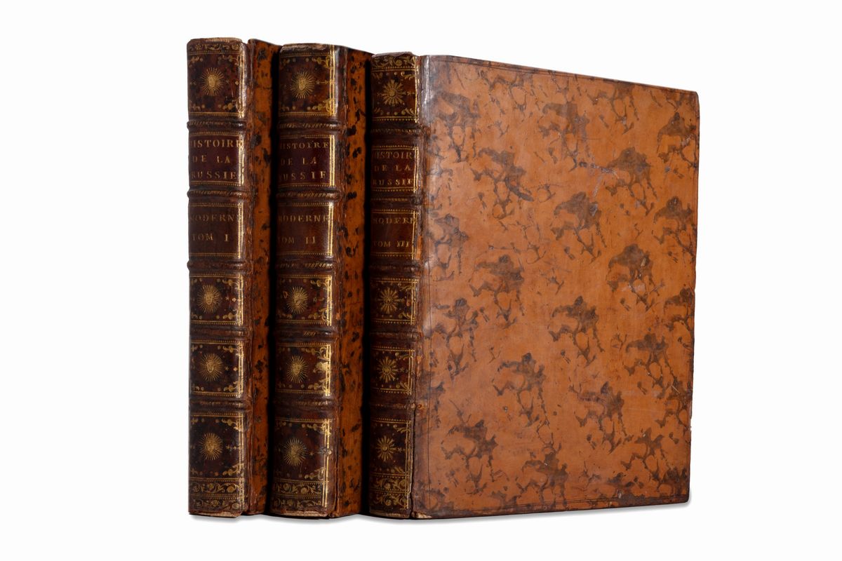 Aris, Froulle; Versailles, Blaizot (voll.I-II); Parigi, Maradan; Versailles, Blaizot (vol. III), 1783;1785; an II [1793]. In 4°. 3 voll. Al I vol. 2 carte geografiche ripiegate, 1 ritratto e 10 carte fuori testo di tabelle statistiche, al II vol. 6 tavole di ritratti, leggera brunitura, leggermente più intensa su poche carte, qualche lieve fioritura e piccola macchia, legatura coeva in vitello screziato, titolo e numero di tomo entro tasselli al dorso a 5 nervi con fregi impressi in oro, piccole mancanze alle cuffie, lievi difetti. Ex libris cartaceo ai contropiatti.