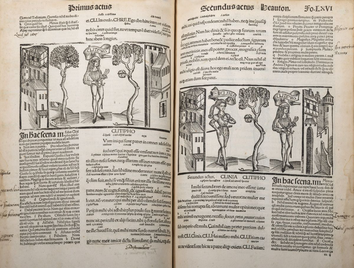Seconda edizione illustrata, la prima di Johann Grüninger. L'elemento più caratteristico di questa edizione è la serie di legni che la illustrano. Ogni sezione è per la prima volta introdotta da una xilografia a tutta pagina che riunisce tutti i protagonisti. I legni più piccoli all'inizio di ogni scena sono realizzati utilizzando blocchi separati, consentendo di riorganizzare la composizione come desiderato. Il confronto con altri esempi noti evidenzia efficacemente variazioni più o meno significative nell'illustrazione.