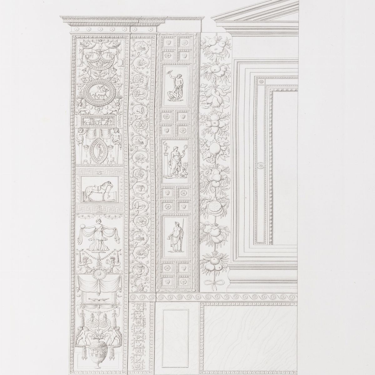 Roma, Agostino Valentini, 1845 - 1855. In 2°. 2 volumi in barbe. I vol. con 118 tavv. incise in rame (numerate I-CXI: ma con alcuni numeri bis), II vol. con 120 tavv. incise in rame (numerate I-LXXIX e I- XLI), lievi fioriture, legatura coeva in pergamena, impressioni in oro entro doppio tassello rosso al dorso a 4 nervi, lievi difetti.