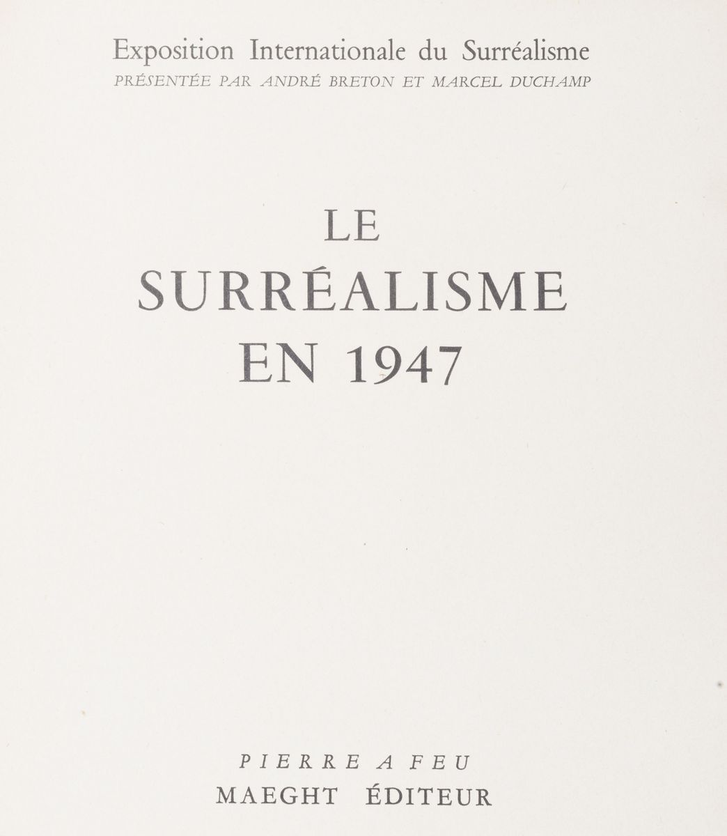 Paris, Edition Pierre à Feu – 5Maeght, 1947. In 8° quadrato, pp. 140 per il testo, con 20 illustrazioni e XLIV tavole e 24 fuori testo originali: 5 litografie a colori di Victor Brauner, Max Ernst, Jacques Hérold, Wilfredo Lam e Joan Mirò, 5 acqueforti, di cui una a colori, di Hans Bellmer, Marcel Jean, Maria, Yves Tanguy e Dorothée Tanning, 2 xilografie di Jean Arp e 12 litografie in nero di Serge Brignomi, Alexander Calder, Bruno Capacci, Elisabeth van Damme, Julio de Diego, Enrico Donati, David Hare, Jacqueline Lanba, Matta, Kay Sage, Yve Tanguy, Toyen. L'impressione delle acqueforti è opera di Lacourière, quello dei legni e delle litografie in nero e a colori sono opera dei fratelli Mourlot. Tutte le lastre, i legni e le pietre sono state distrutte dopo la stampa. Brossura edit.oriale con astuccio, illustrata da una riproduzione fotografica del manifesto originale di Marcel Duchamp. Lievi difetti.