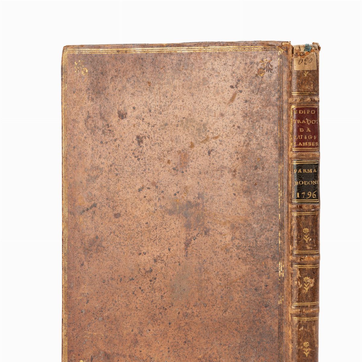 Parma, nel regal palazzo, 1796.In 4° grande. Numerose correzioni al testo, pochi aloni , legatura dell'epoca in vitello marrone, cornici di filetto ai piatti, dorso a quattro comparti con tasselli in pelle nera e rosso con titoli in oro, qualche macchia e piccole mancanze. Al contropiatto anteriore firma di appartenenza di "Francesco Testa Vicentino".