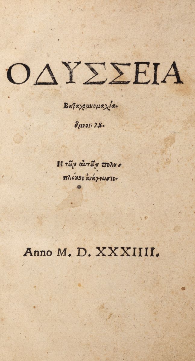 [Strasburgo, [Wolfius Caephalaeus],1534. In 8°. Tre parti in due voll. Al primo volume carta con titolo entro cornice figurata, spazi per iniziali con letterine guida, al secondo volume figura xilografica a piena pagina, annotazioni di mano antica, bruniture, macchie, qualche strappo, legature posteriori in pergamena, al dorso tasselli in pelle.