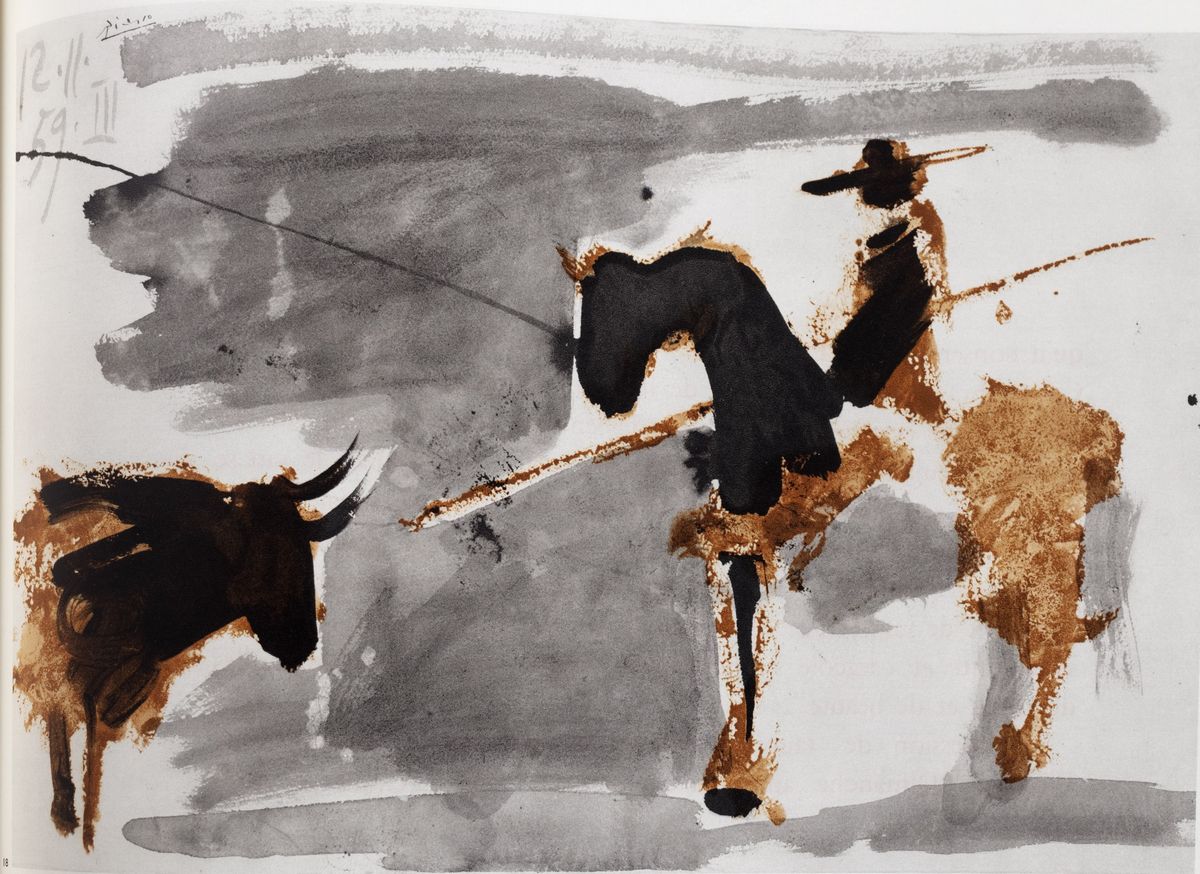 A los toros avec Picasso. Texte de Jaime Sabartes. Quatre lithographies originales de Pablo Picasso réalisées spécialement pour cet ouvrage. , 1961