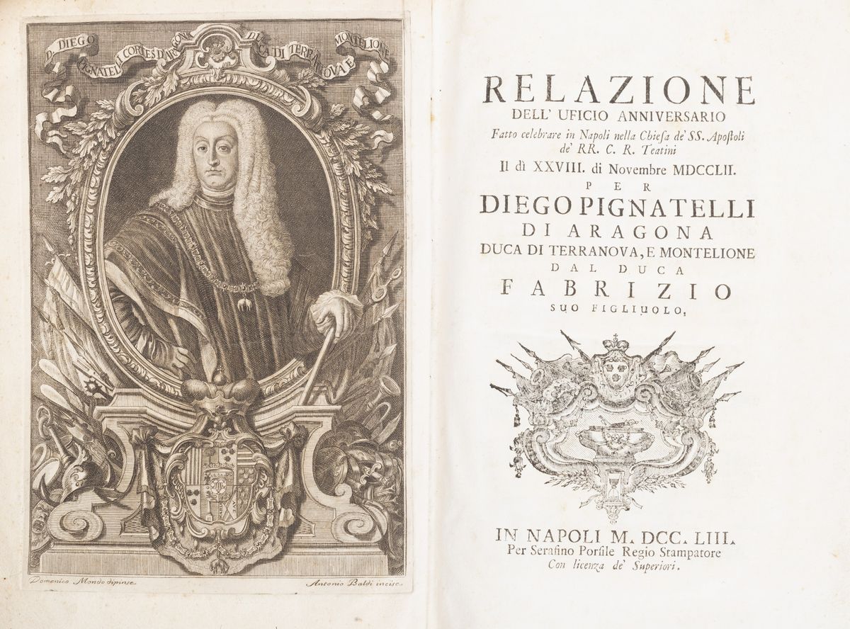 Relazione dell'uficio anniversario fatto celebrare in Napoli nella Chiesa de' SS. Apostoli de' RR. C. R. Teatini il di 28. di Novembre 1752 per Diego Pignatelli di Aragona Duca di Terranova, e Montelione dal Duca Fabrizio suo figliuolo, 1753
