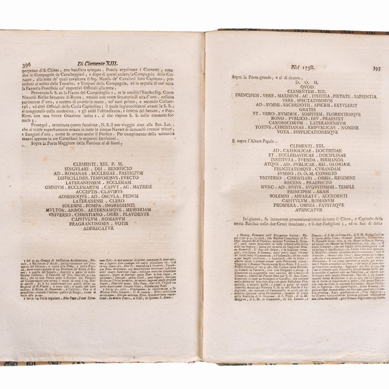 Roma, Luigi Lazzarini, 1802. In 2°. Occhietto, ritratto di Pio VII inciso in rame al frontespizio, qualche fioritura, alcune carte con leggera brunitura, legatura coeva in mezzo marocchino verde e carta decorata, autore e titolo impressi in oro entro tassello rosso al dorso liscio, difetti al dorso, segni di usura agli angoli.