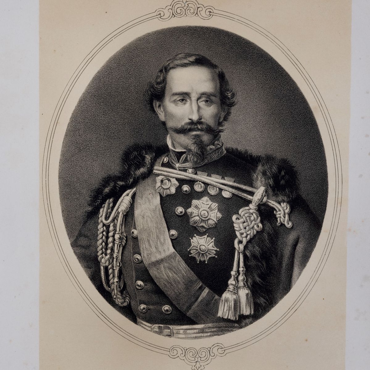 Album contenente tavole del celebre reportage di guerra con illustrazioni realizzate sul campo da Carlo Bossoli. Numerosi sono i ritratti delle figure di spicco della Guerra d'Italia, scene di guerra e due mappe delle battaglie di Magenta e Solferino.