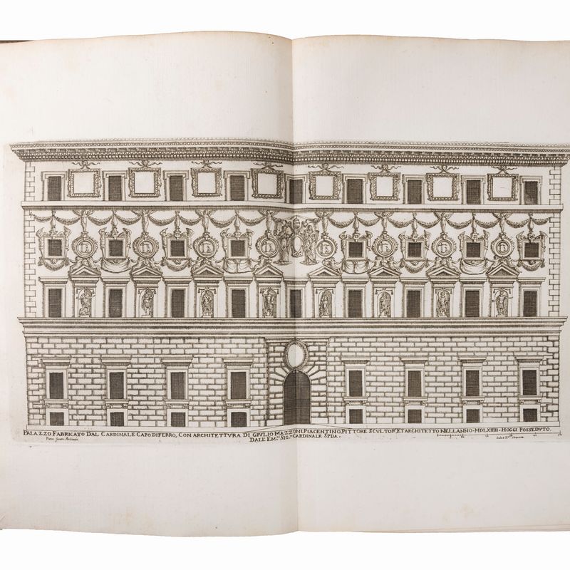 La prima pubblicazione a fornire una illustrazione sistematica dei palazzi romani costruiti tra il sec. XV e XVII. Per ciascuno dei palazzi romani, noti e meno noti, è indicato il nome del proprietario e dell'architetto che lo ha costruito, e sono accompagnati il più delle volte da spaccati e piante a guisa di un trattato d’architettura. Berlin Catalogue 2665; Cicognara 3719.