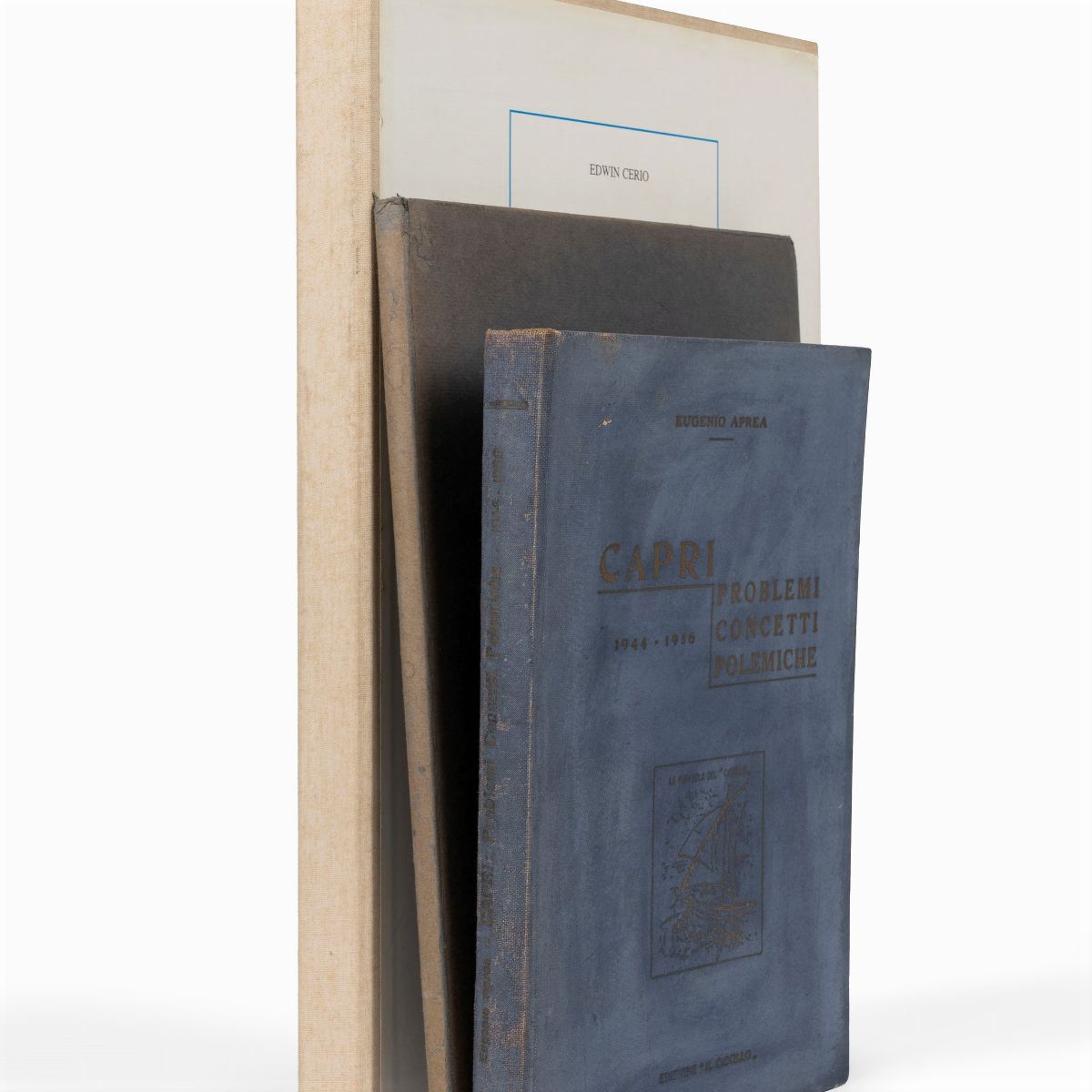 Napoli, Edizioni "Il Ciccillo", 1957. 8°, pp. XVI-208. Legatura editoriale in tela. Edizione di soli 150 esemplari di cui 50 destinati alla vendita. Il volume, che raccoglie una serie di articoli pubblicati su riviste e giornali in tredici anni di attività, secondo gli intendimenti dell'autore vuole essere "Una semplice esposizione di tutto quello che si è pensato di fare in questi anni, quello che si è fatto e tutto quello che si sarebbe dovuto fare e non si è fatto (per Capri)". § Cerio, Edwin. Capri attraverso la vita di Ignazio Cerio. Volume primo (unico pubblicato): La vita e la figura di un uomo. Roma, Alfieri & Lacroix. 4°, pp. 57 con illustrazioni n.t. e 10 tavole f.t. Cartonato editoriale con titolo e illustrazione al piatto. § Cerio, Edwin.La casa, il giardino e la pergola nel paesaggio di Capri. Con scritti introduttivi di Ernesto Mazzetti e Ippolito Mazzetti. Napoli, 1997. Folio, pp. 156 con 84 illustrazioni in nero e a colori. Legatura editoriale con astuccio illustrato. Edizione non venale di soli 499 esemplari.