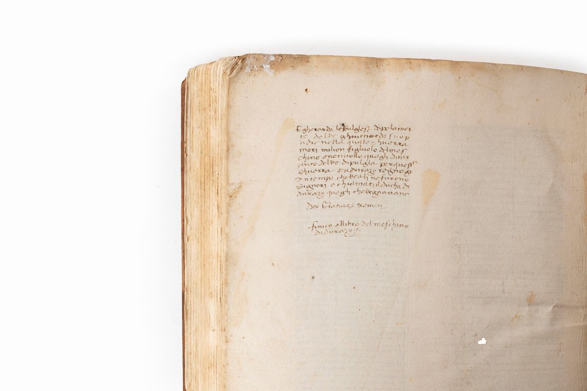 Explicit: "E gherardo le pulglese dopo la morte del re ghuicciardo suo padre nella quale ghuerra mori millon figliuolo del meschino e non vollo [sic] quegli di Taranto del Re di Pulglia per questa ghuerra e a durazo regno gran tempo che Reali ne furono signori e chiamati ducha di durazo quegli che segnavano. Deo Gratia Aemen [sic]. finto el librio del meschino di durazo."