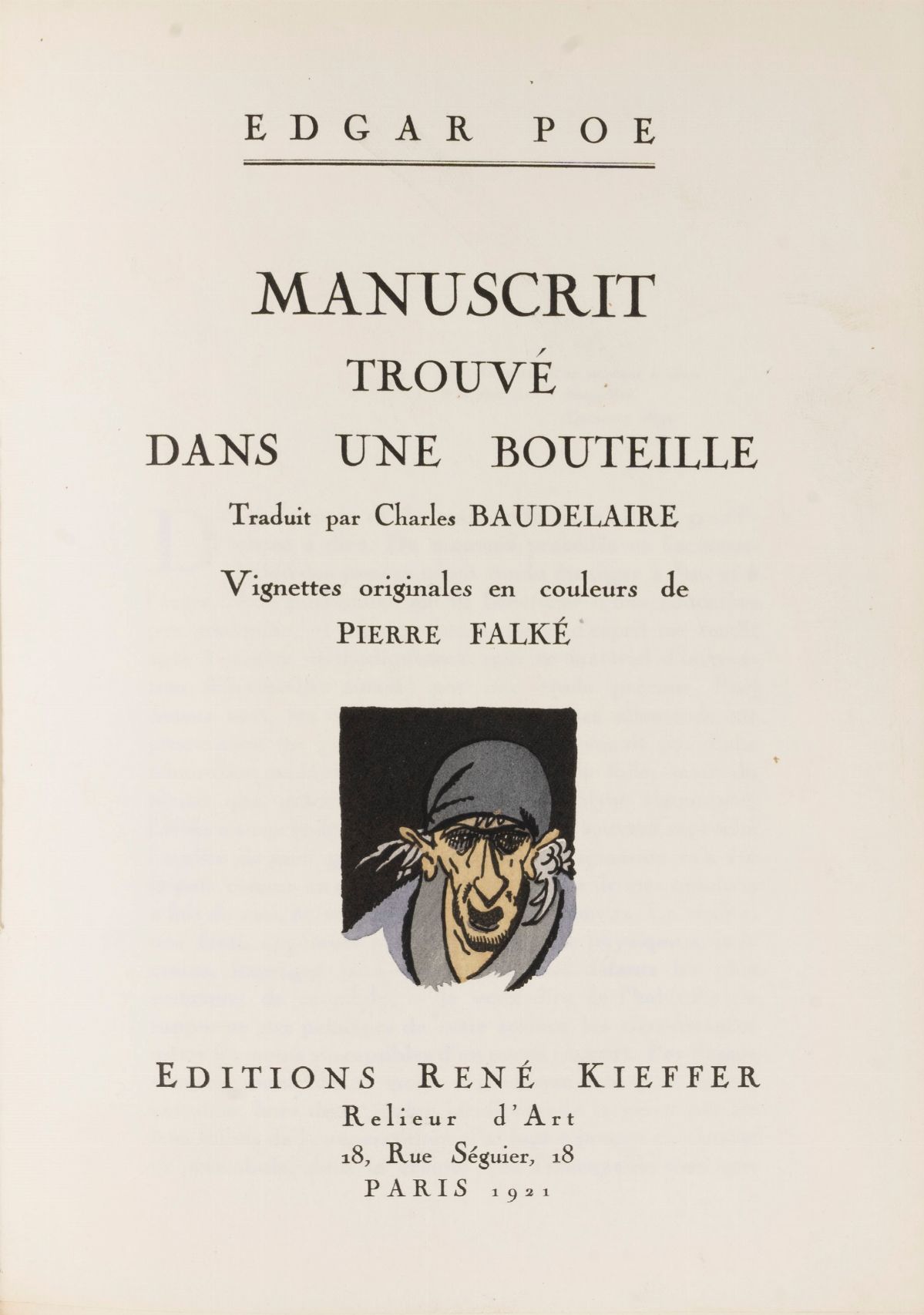Manuscrit Trouvé dans une Bouteille. Traduit par Charles Baudelaire. Vignettes originales en couleurs de Pierre Falké, 1921