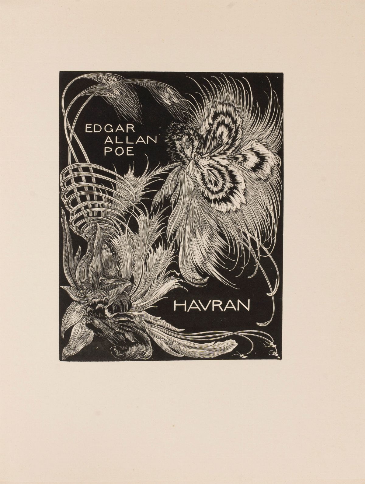 Parigi, René Kieffer, 1921. In 4°. Con 30 illustrazioni nel testo con coloritura a pouchoir, rare fioriture, brossura editoriale con titoli e piatti decorati. § insieme nel lotto Poe, Edgar Allan Poe, Kobilha, František. Havran, 1952. Praga, Fucikova [1953]. In 4°. Con 2 incisioni, testo in lingua ceca, fascicoli sciolti, leggera brunitura, brossura in cartoncino con sigla dell'autore al piatto.