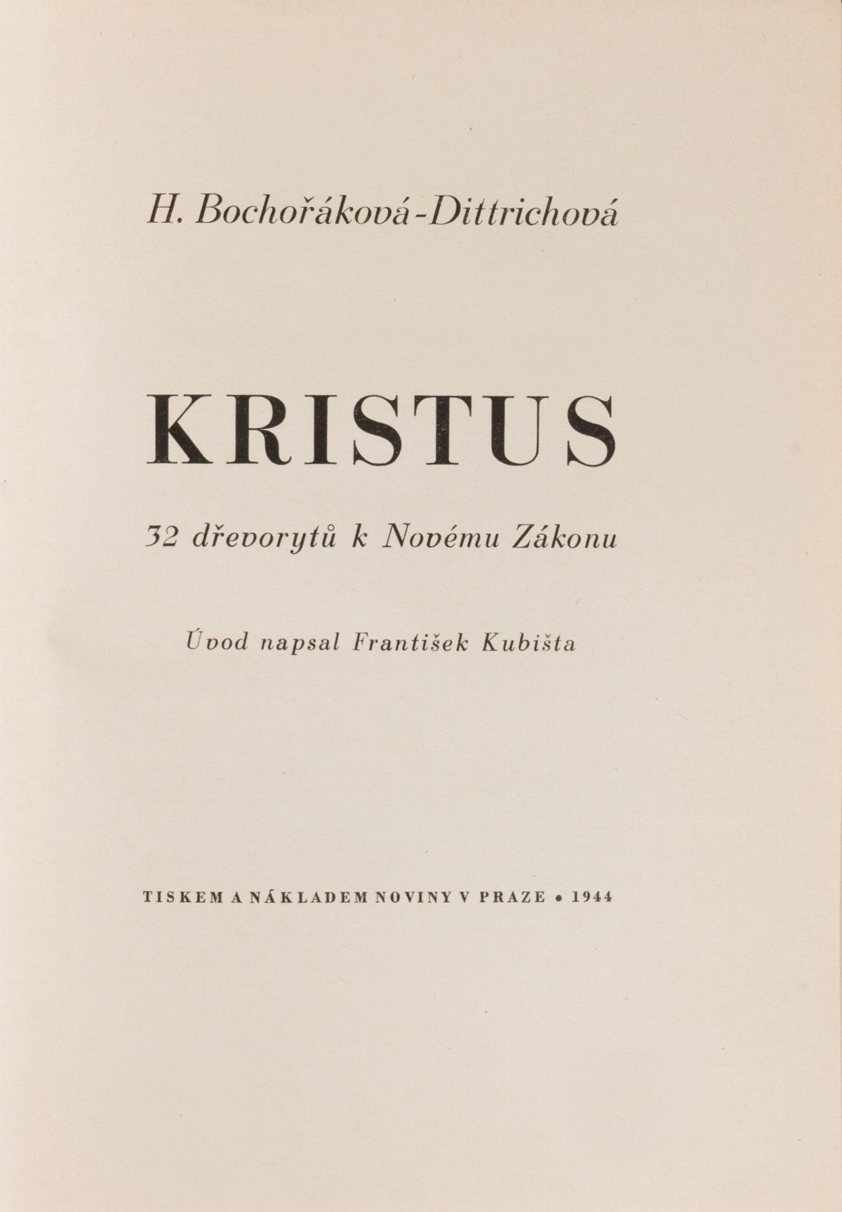 Praga, Orbis, 1929. Frontespizio inciso, con 95 incisioni xilografiche in bianco e nero a piena pagina, pp. 5-14 di testo in lingua ceca a cura di Arne Novak, leggera e usuale brunitura uniforme, piccolo strappo senza perdita al margine interno della carta di guardia e della carta con il colophon, brossura editoriale in cartoncino rigido con illustrazione al piatto anteriore, camicia illustrata, lievi difetti. § Insieme nel lotto, della stessa autrice, Kristus, Praga, Tiskem A Nakladem Noviny, 1944. Con 35 xilografie in bianco e nero a piena pagina, legatura editoriale in mezza pelle e cartoncino, titolo inciso al piatto anteriore, lievi difetti.