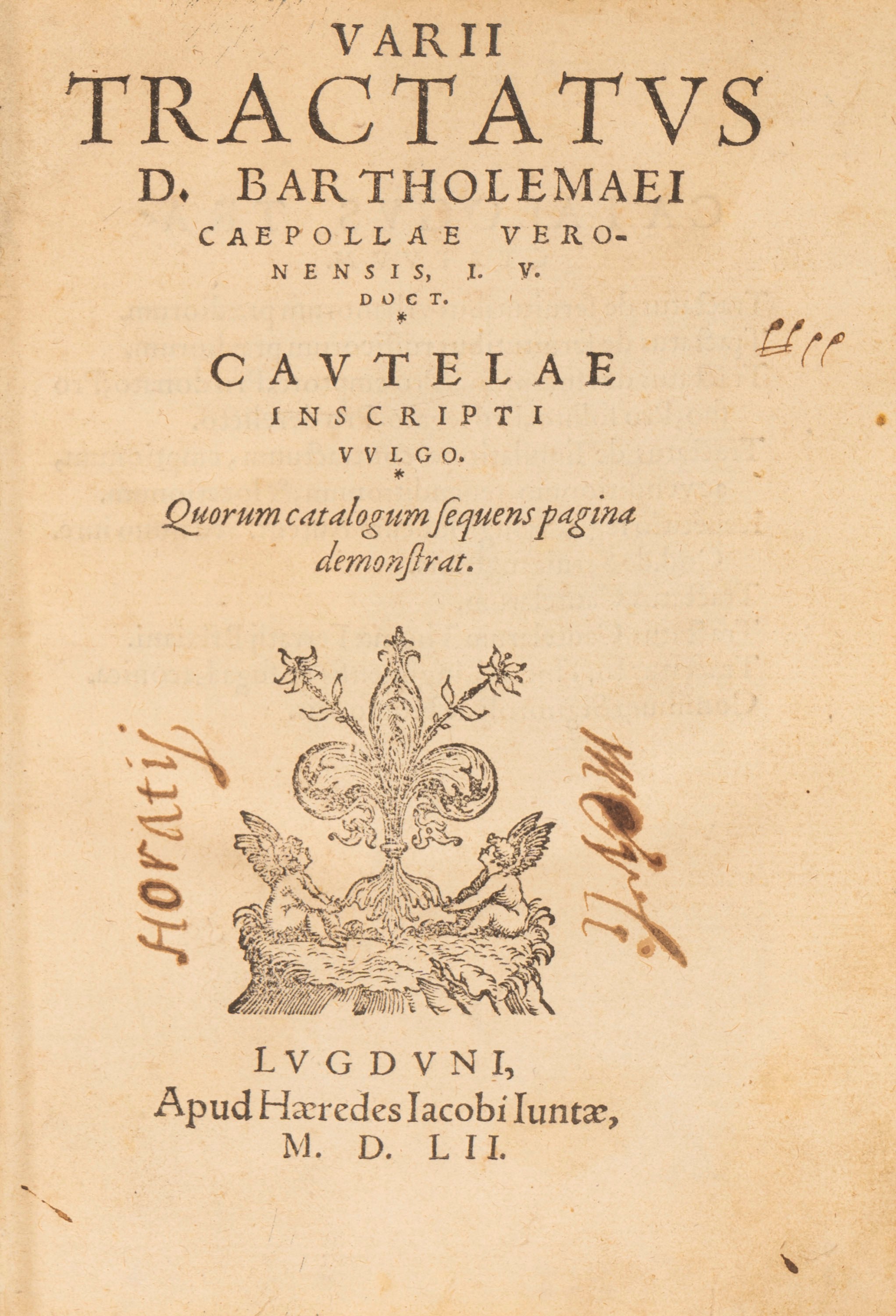 Lione, eredi di Jacobi Iuntae, 1552. In 8°. Marca tipografica al frontespizio, testo su due colonne, leggera brunitura, piccolo lavoro di tarlo al margine interno di alcuni fascicoli, legatura coeva in mezza pergamena e carta marmorizzata, titolo in oro entro tassello al dorso, lievi difetti. Nota di appartenenza al frontespizio.