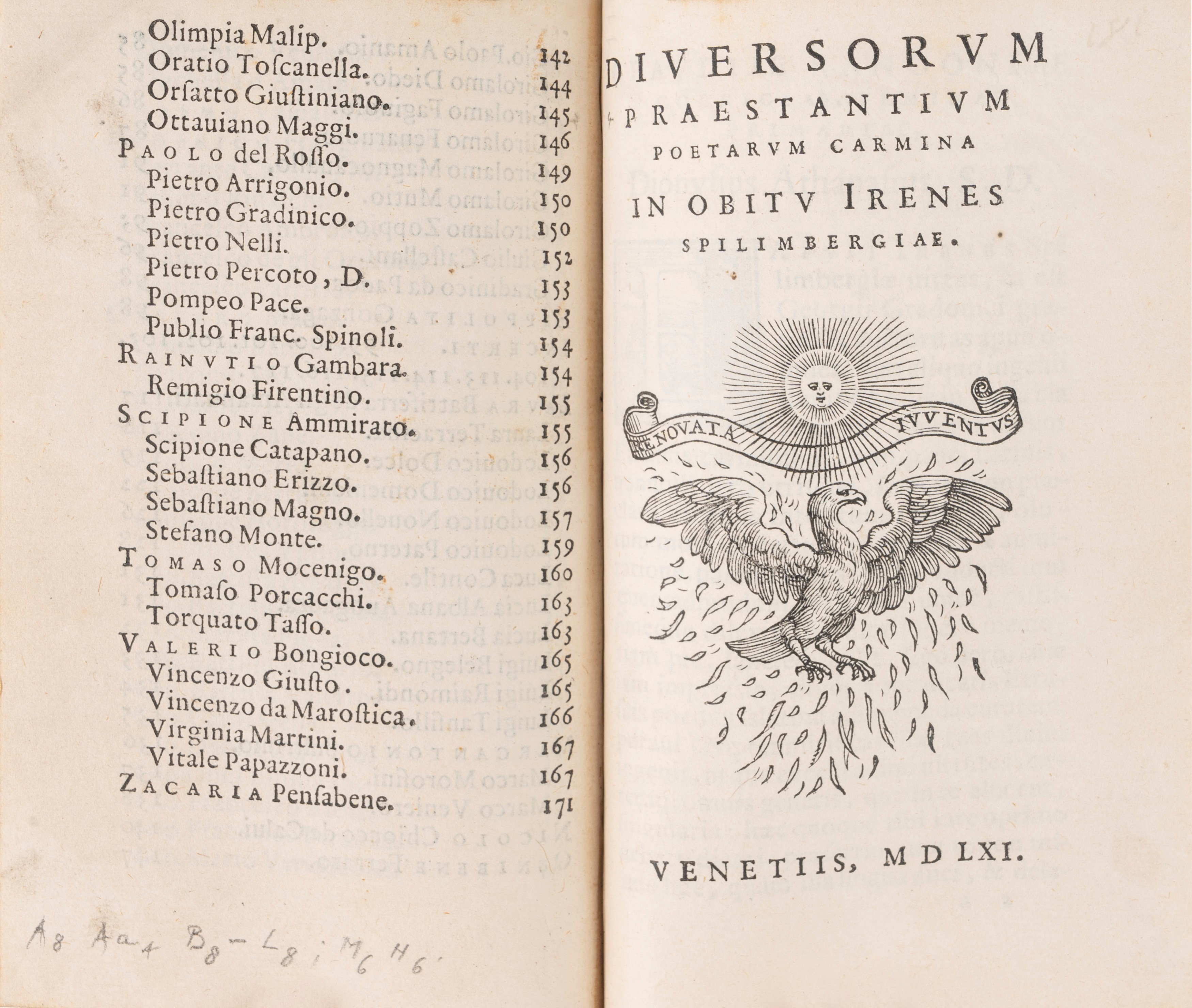 Rime di diversi nobilissimi, et eccellentissimi autori, in morte della Signora Irende delle Signore di Spilimbergo, 1561