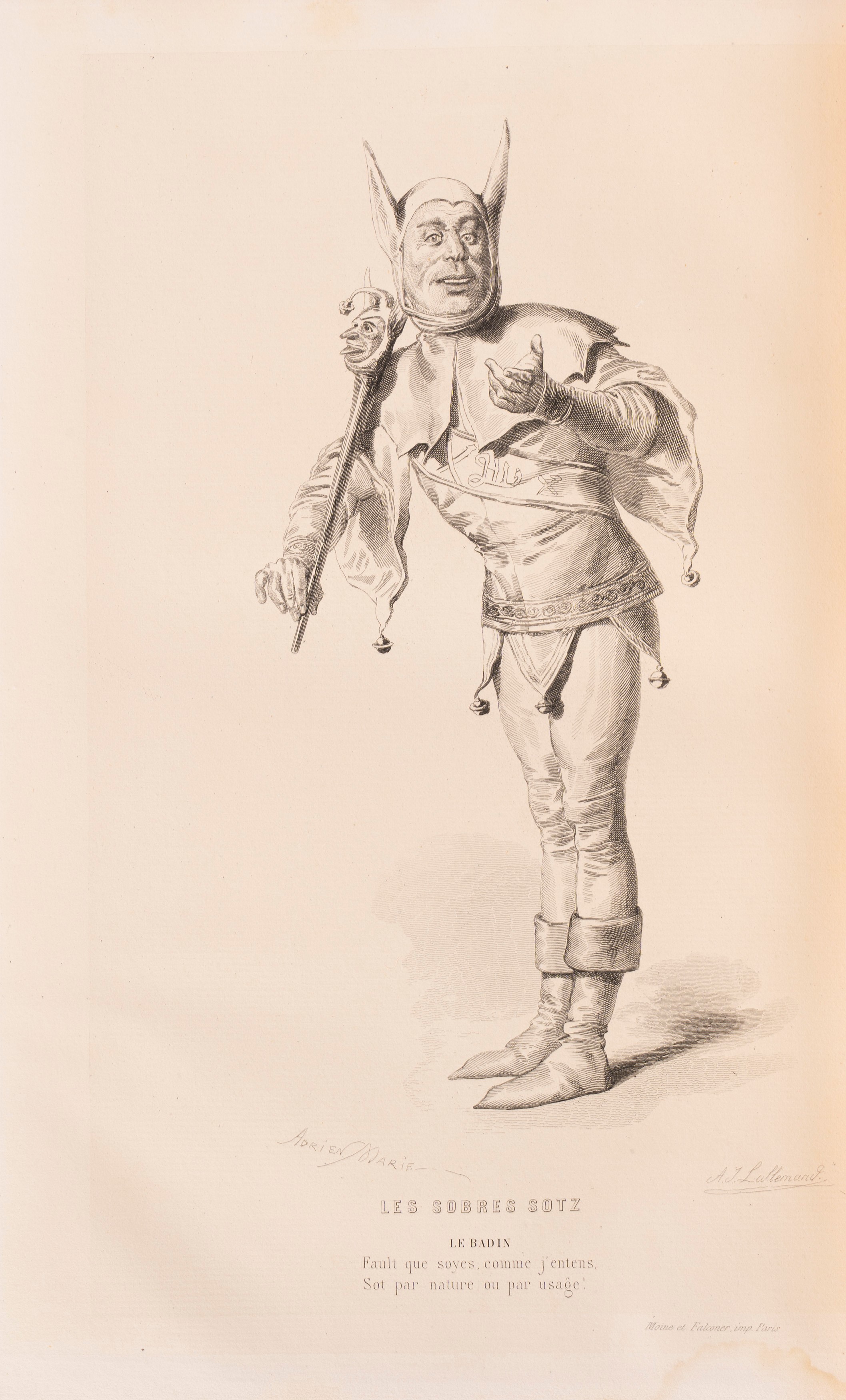 Parigi, Laplace, Sanchez et Cie Éditeurs, s.d. (1870 circa). In 8°. Legatura in mezza pelle con piatti marmorizzati. Dorso con 4 nervi e con titoli in oro. Sguardie marmorizzate. Ex libris al contropiatto. Taglio superiore dorato. Testo in francese. Disegni, in due stati e protetti da veline, a cura di MM. Maurice Sand, Allouard e Adrien Marie. Esemplare in ottimo stato di conservazione, ad eccezione di leggere bruniture.