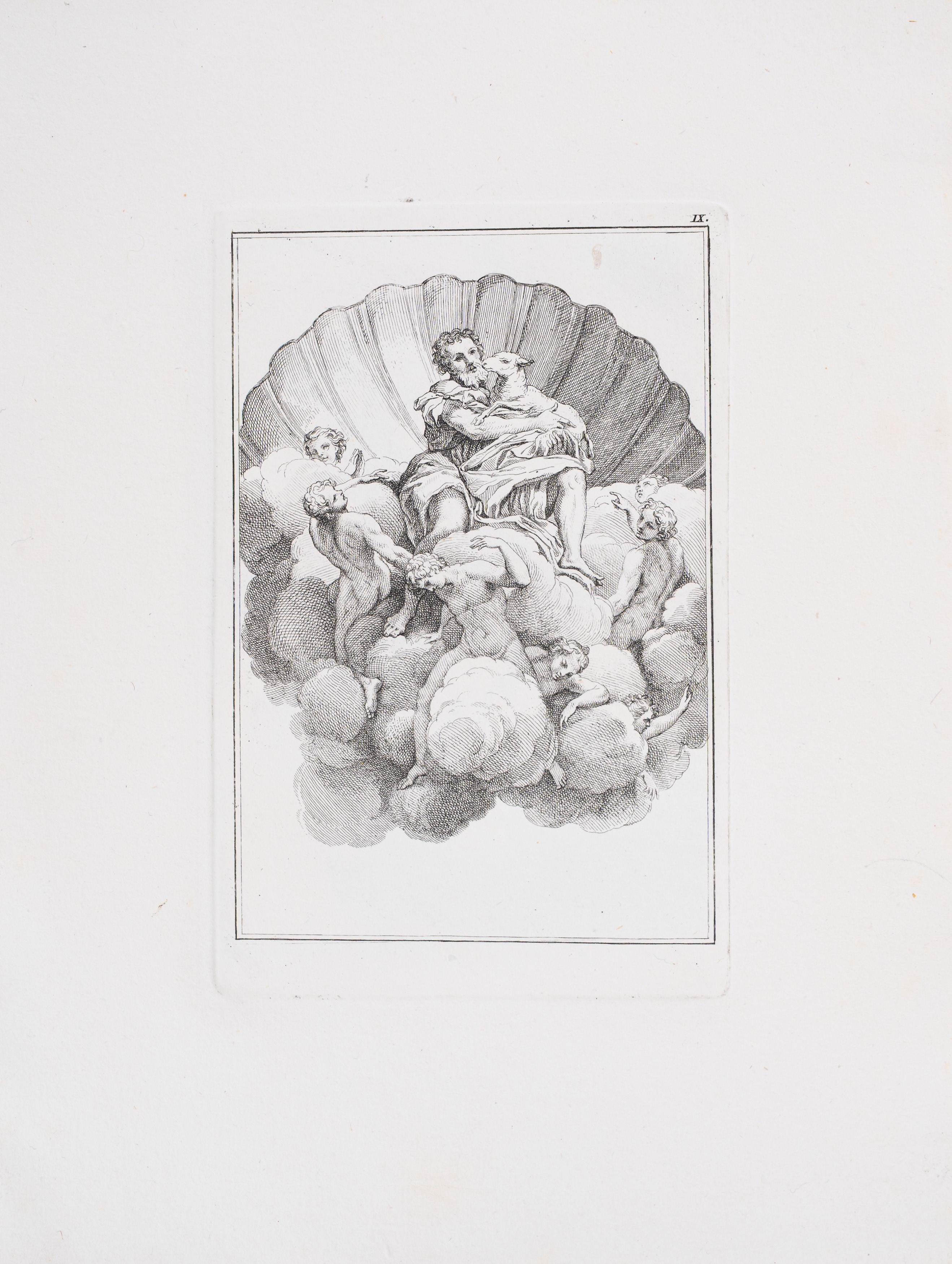 Incisioni tratte dalla omonima edizione Bodoniana “Le più insigni pitture parmensi indicate agli amatori delle belle arti”. Parma, dalla tipografia Bodoniana, 1809. Le incisioni degli esemplari confrontati hanno tutte numerazione uniforme e corrispondenti, mentre questa serie di incisioni sono su fogli di carta interi non rilegati e presentano una numerazione che non corrisponde a quella dell’edizione summenzionata. Il che lascia pensare che tali incisioni potrebbero essere quelle preparatorie per l’opera, dove in seguito è stata modificata la numerazione, dunque l’ordine. Questo rende questo lotto prezioso e unico.