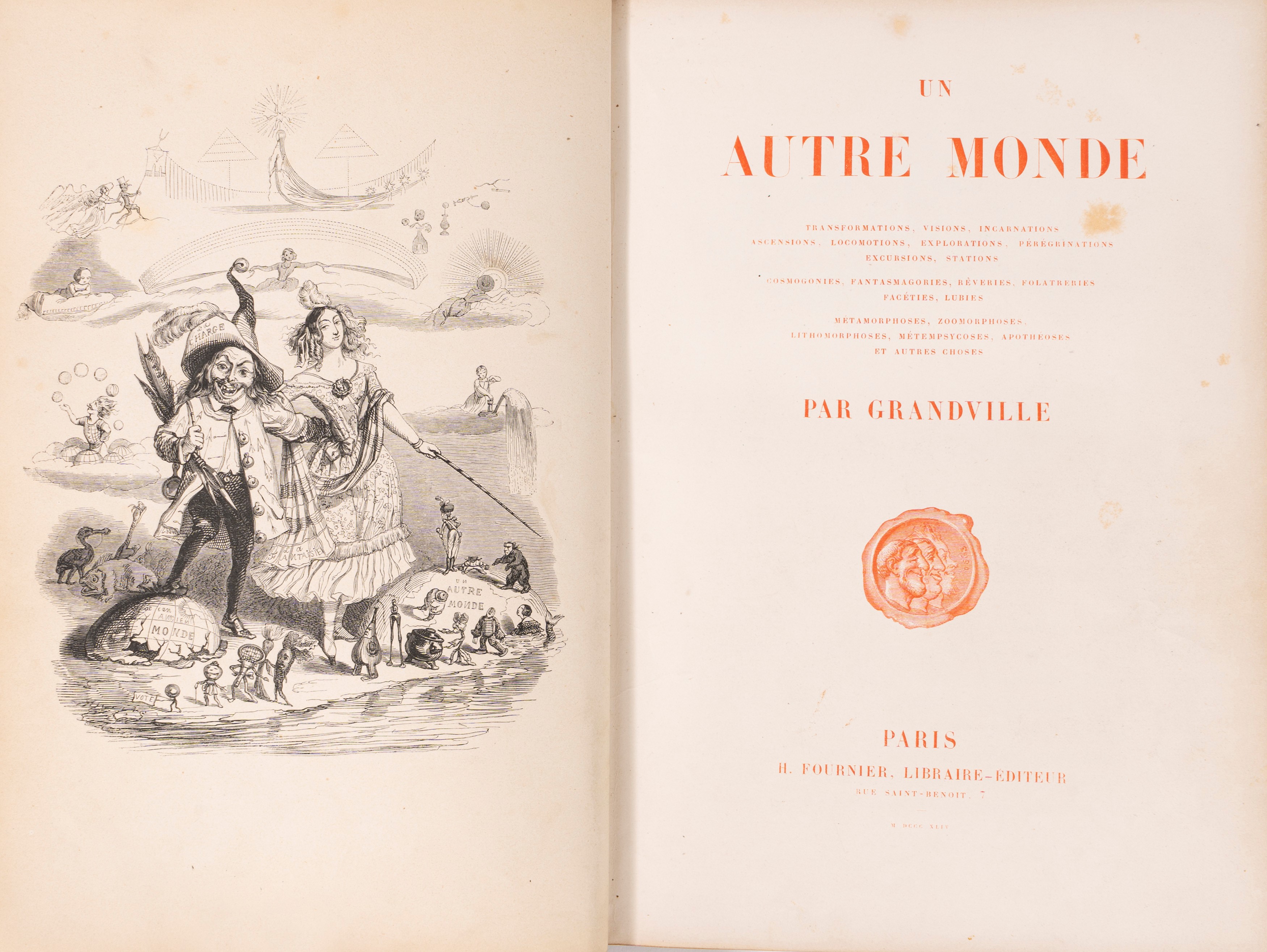 Parigi, Fournier Libraire-Éditeur, 1844. In 8°. Legatura in mezza pelle con angoli e rifiniture in oro. Dorso con 5 nervi, autore e fregi impressi in oro. Sguardie marmorizzate. Tagli in oro. Edizione riccamente illustrata sia a piena pagina che all'interno del testo, a colori e in bianco e nero. Esemplare in ottimo stato di conservazione.