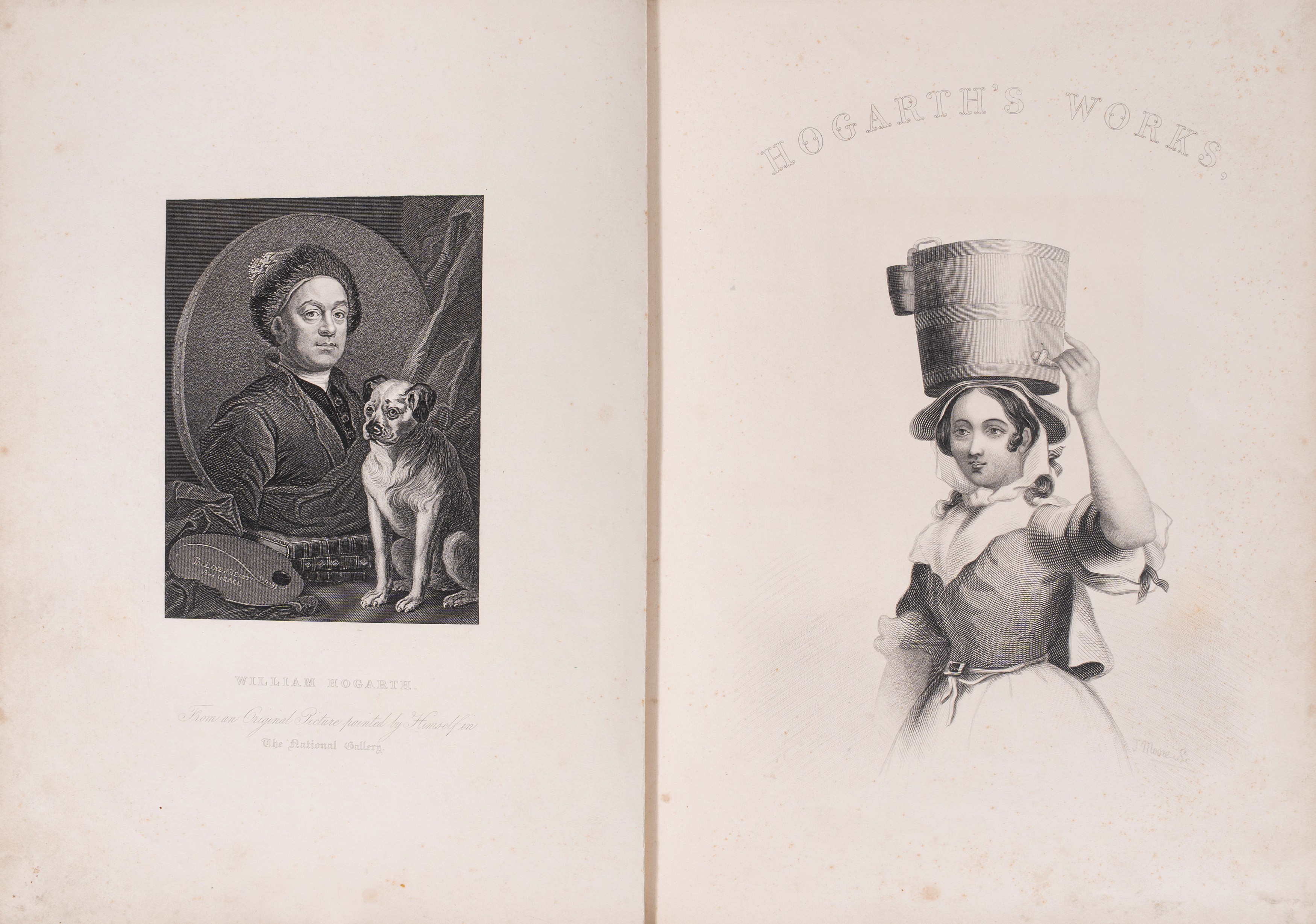 Londra, Griffin, Bohn and Company, s.d. (1860). In 4°. Legatura in piena pelle. Dorso con autore e fregi in oro. Piatti con fregi dorati a secco. Dorso con restauri e rinforzi. Tagli in oro. Edizione con riproduzione delle famose incisioni di Hogarth, comprese alcune serie satiriche. Leggere bruniture e piccoli difetti alla legatura.