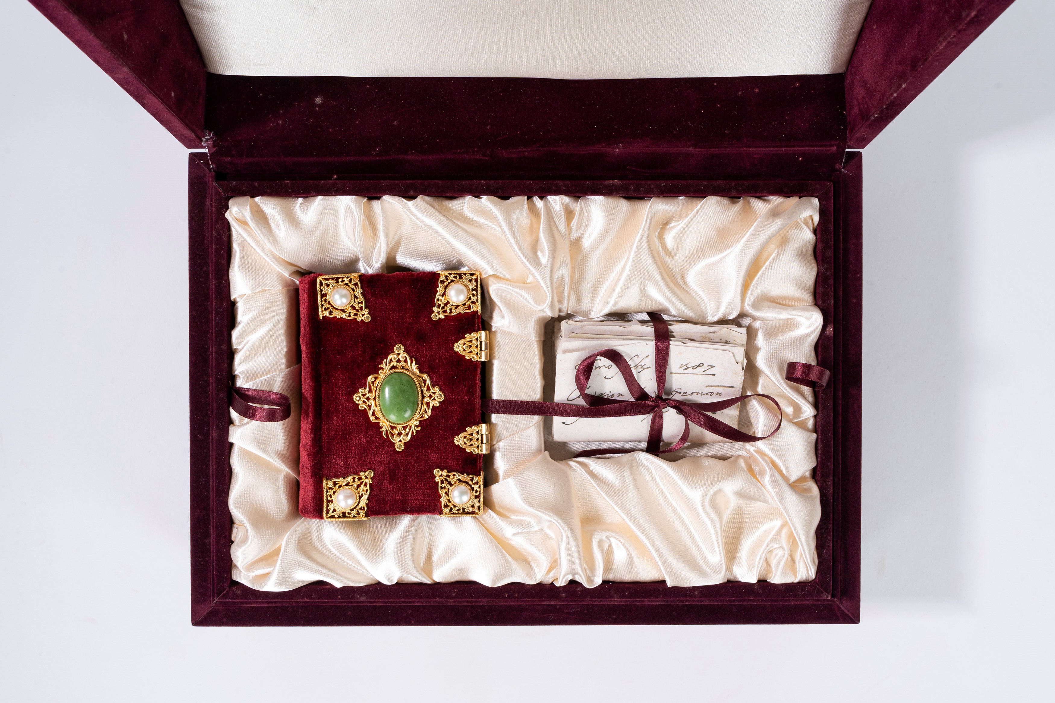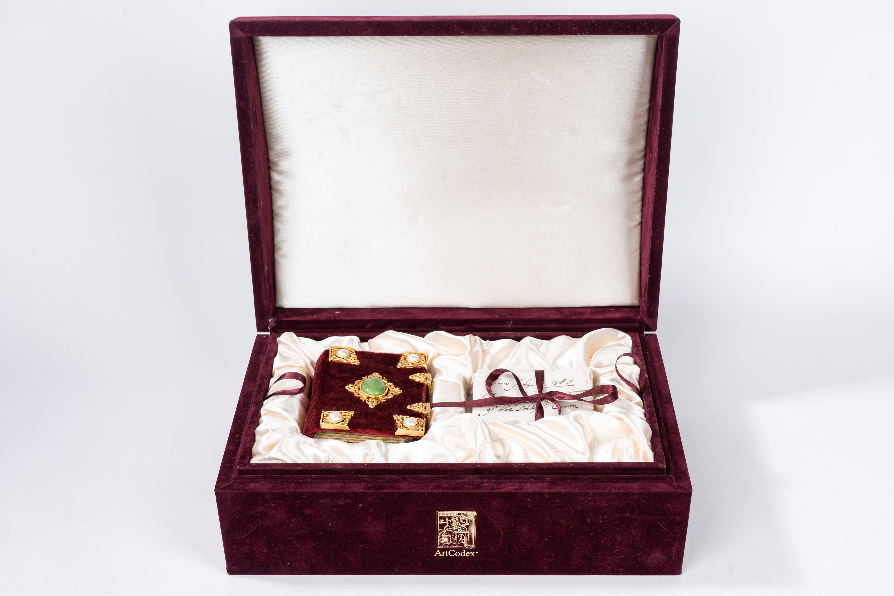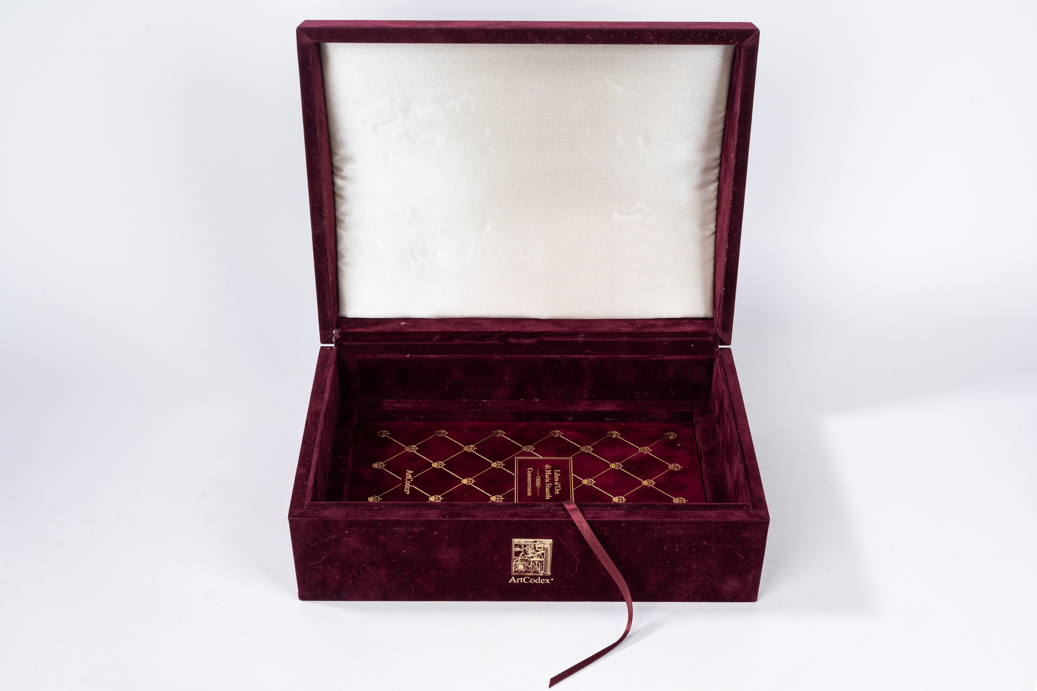 Copia n. 699 di 999. Riproduzione dettagliata a colori del codice originale, con riproduzione del mandato di esecuzione. Legatura in velluto rosso con decori in ottone e pietre dure, chiusa da fermagli. Entro cofanetto editoriale in velluto. Con un volume di commentario.