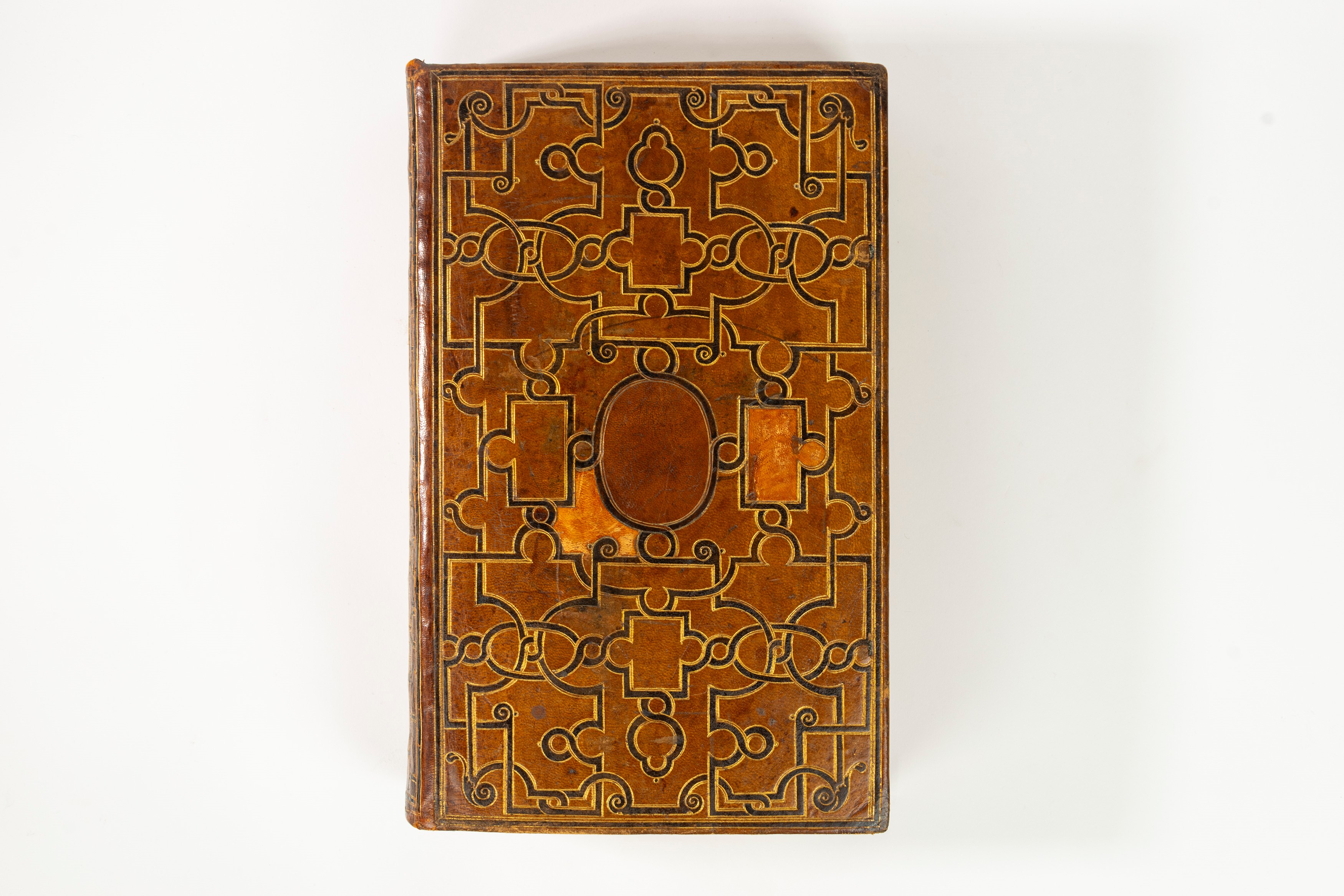 "Queste rilegature corrispondono o a un particolare sviluppo delle rilegature a intreccio del regno di Enrico II, o a un ramo staccato dalle rilegature a ventaglio primitive, realizzate con questa magnifica pelle con polvere d'oro del gruppo III delle rilegature di Mabien: è possibile che il doratore abbia scelto questa decorazione leggera per evitare di uccidere il tono del cuoio, cosa che non avrebbe mancato di fare una doratura più carica". (Les Reliures à la Fanfare. G. D. Hobson 1931).La presente legatura appartiene al piccolo gruppo realizzato intorno al 1565-1570 caratterizzato dall'eleganza e la sobrietà del decoro a ventaglio applicato su una pelle di grande finezza interamente spolverata d'oro, che gli conferisce questa tinta particolarmente calda. La sua struttura la ricollega a uno degli atelier parigini che lavoravano allora per Thomas Mahieu.IL SUO FORMATO, IL SUO STATO DI CONSERVAZIONE, LA SUA ELEGANZA E LA SUA TINTA CALDA GLI CONFERISCONO UN PARTICOLARE SPLENDORE.Bibliografia: Les Reliures à la Fanfare. di G. D. Hobson. Londra 1931.