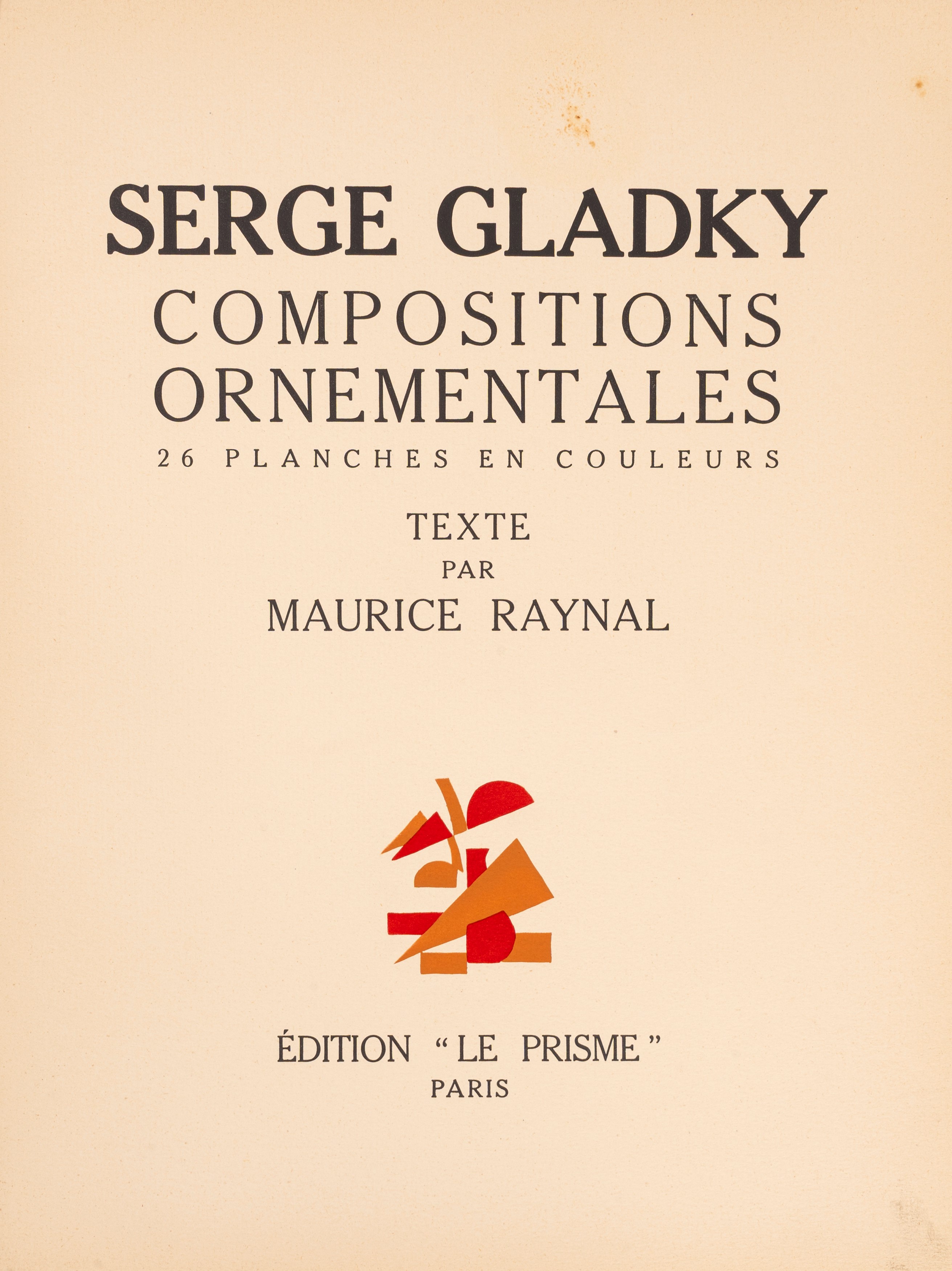 Paris, Le Prisme, 1926. In 4° 330 x 250 mm. 16 pp di testo + 26 tavole, con copertina disegnata da Gladky, lievi difetti. Splendidi disegni cubisti dai colori vivaci dell'architetto russo espatriato, stampati su carta pesante.