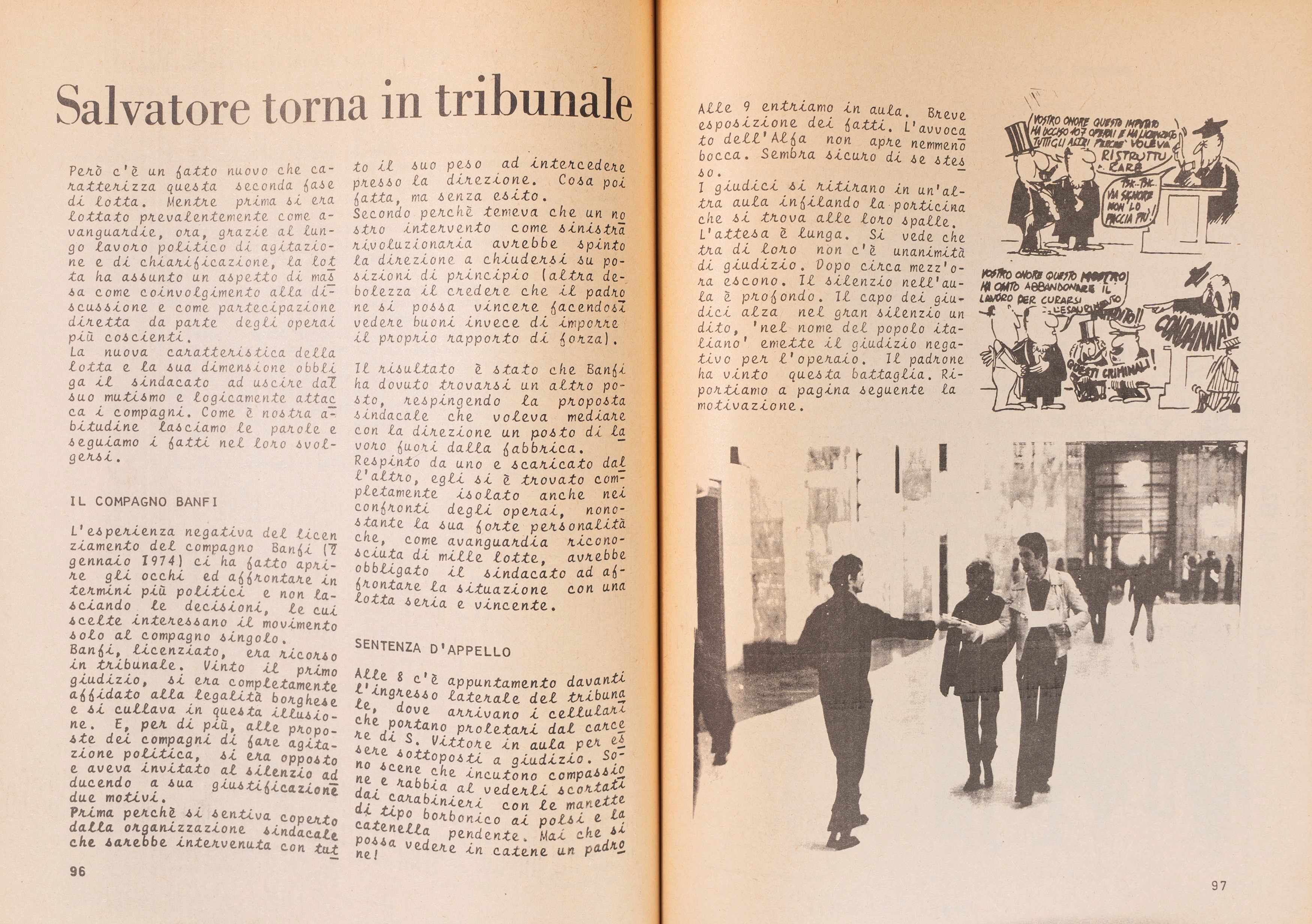 Firenze, Rotografica Fiorentina, 1974. In 8°. Brossura. Volume edito a cura dei compagni dell'assemblea autonoma dell'Alfa Romeo. Pagine in ciclostile, illustrato in bianco e nero. Vi sono riprodotti volantini,