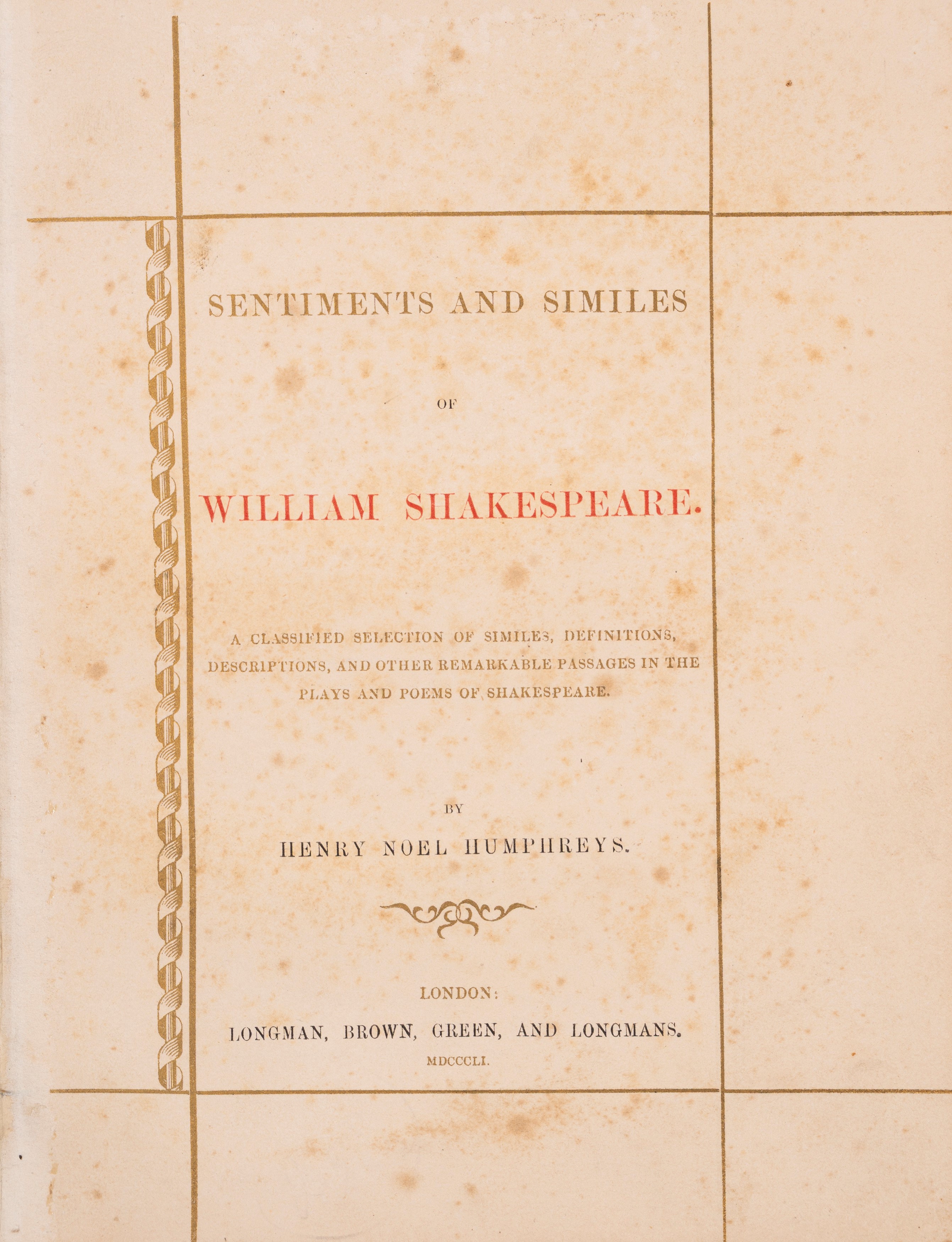 Londra, Longman, Brown, Green, Longmans and Roberts, 1851. In 8° piccolo. Legatura in papier mâché. Tagli dorati. Frontespizio con cornice decorata in oro e lettere in oro e nero. La prima pagina del testo è cromolitografata con filettature dorate e iniziali decorative presenti in tutto il volume. Le restanti pagine sono stampate in nero e oro con iniziali a due colori. Prima edizione. Ad eccezione di leggere bruniture, esemplare in ottimo stato di conservazione.