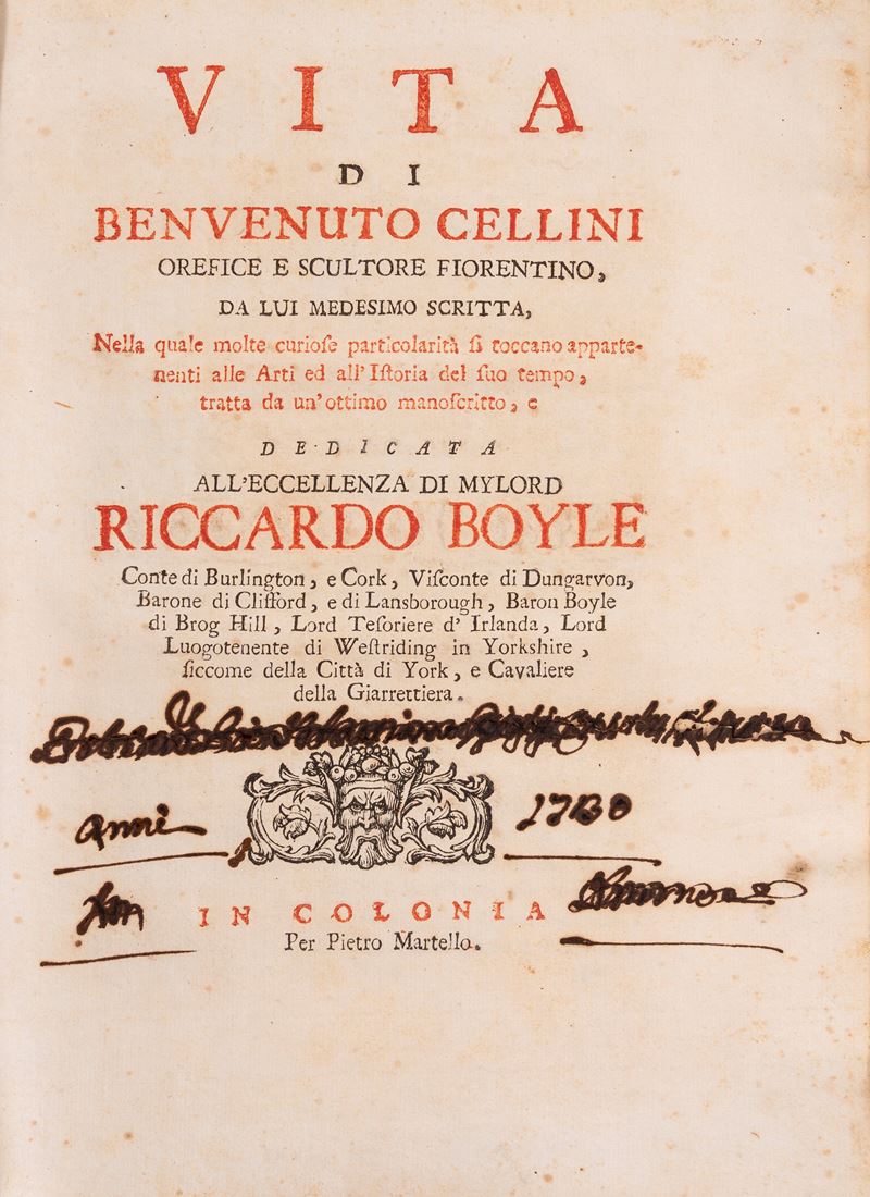 Vita di Benvenuto Cellini orefice e scultore fiorentino da lui medesimo scritta, 1728