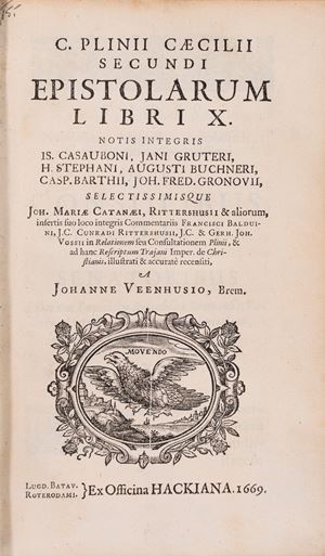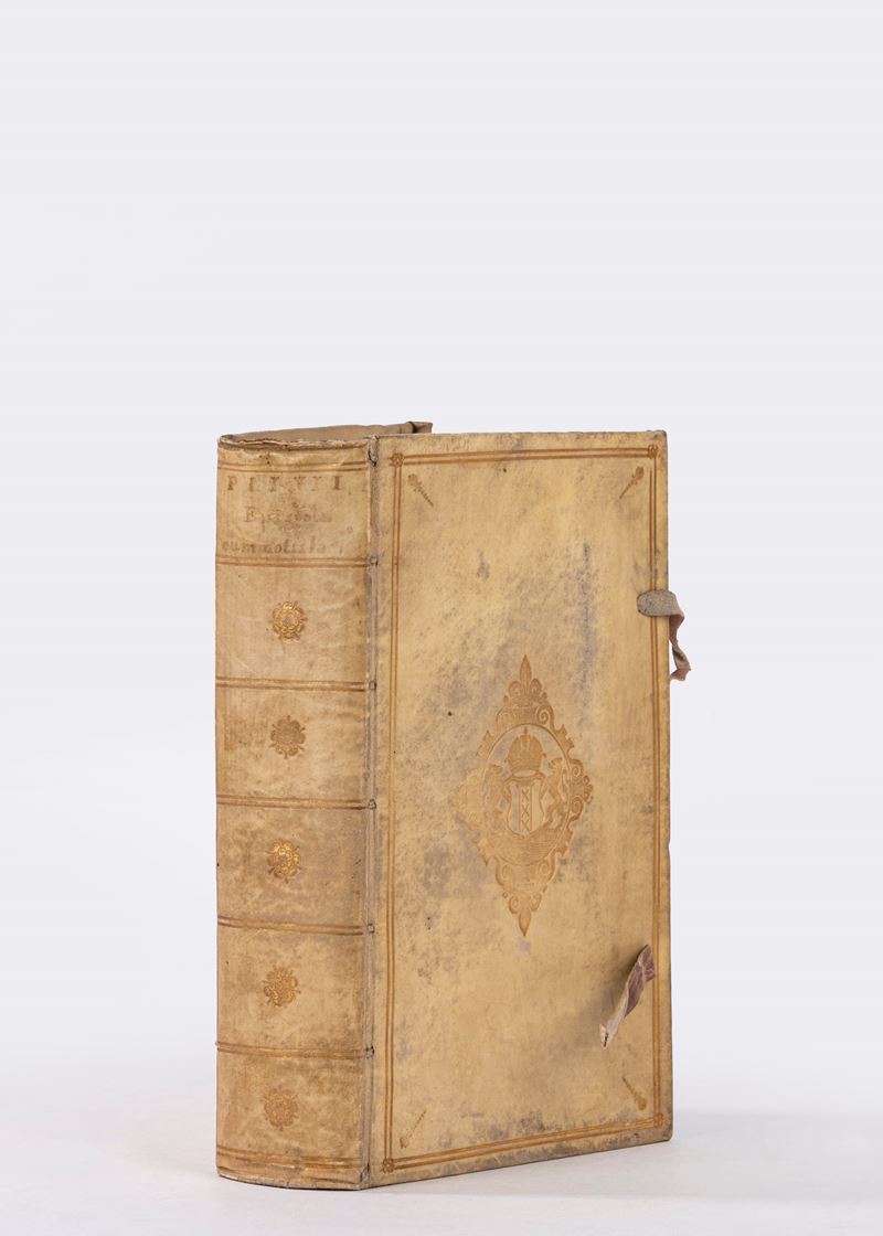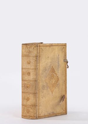 Leida, ex Officina Hackiana, 1669. In 8°. Antiporta incisa in rame da da G. Wingendorp, vignetta al frontespizio, legatura coeva in pergamena, al centro dei piatti armi della città di Amsterdam inquadrati da duplice cornice in oro con fregi, titolo e fregi in oro al dorso, unghie, lacci ai piatti, lievi segni del tempo.