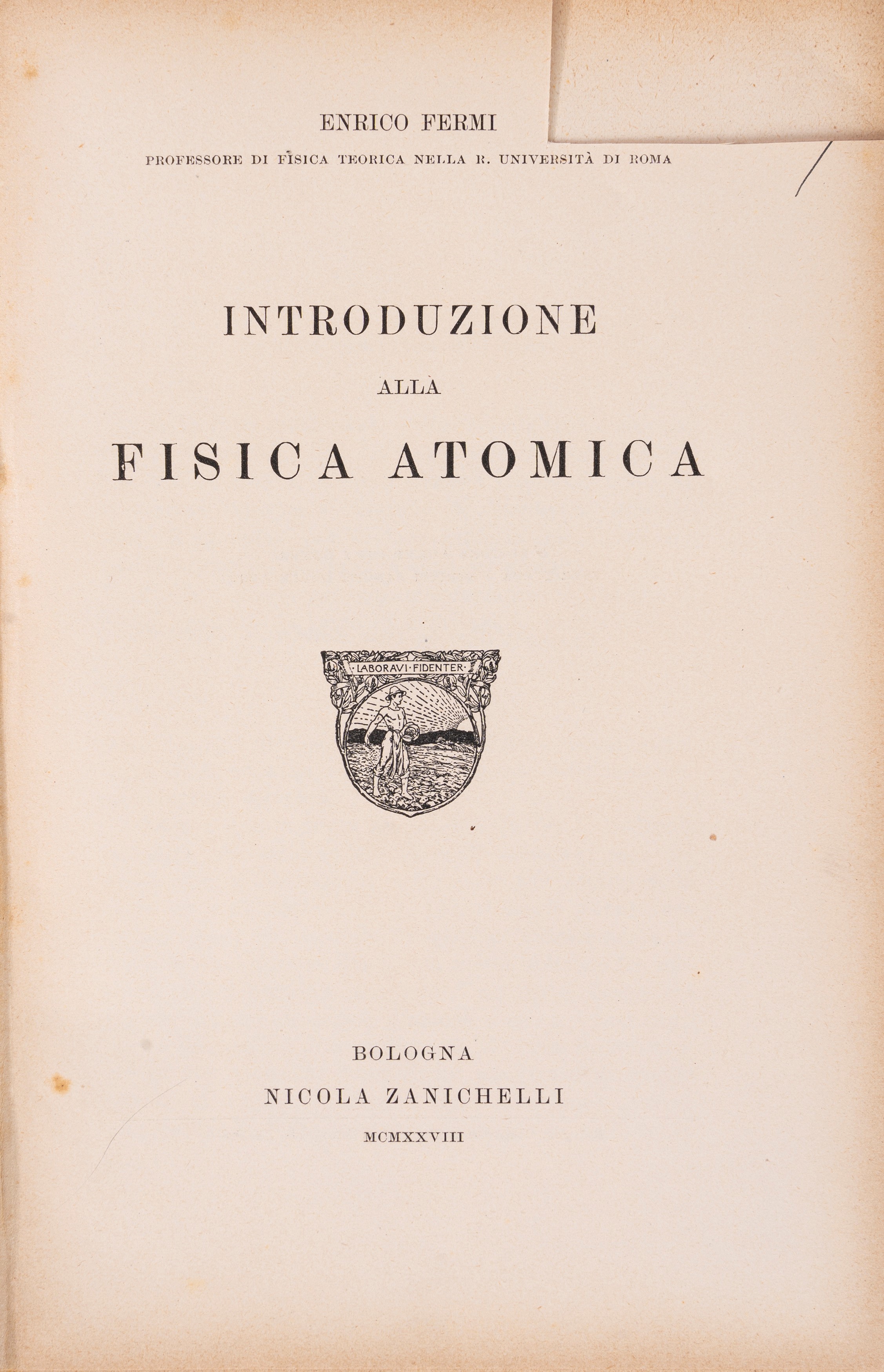 Prima edizione. Introduzione alla fisica atomica di Enrico Fermi è un testo fondamentale per la comprensione delle scoperte della fisica moderna, esplorando concetti come la struttura dell'atomo, la quantizzazione dell'energia e le interazioni tra particelle subatomiche. Fermi offre una sintesi chiara e accessibile delle principali teorie atomiche e nucleari dell'epoca: una delle prime opere italiane di divulgazione scientifica in fisica moderna.