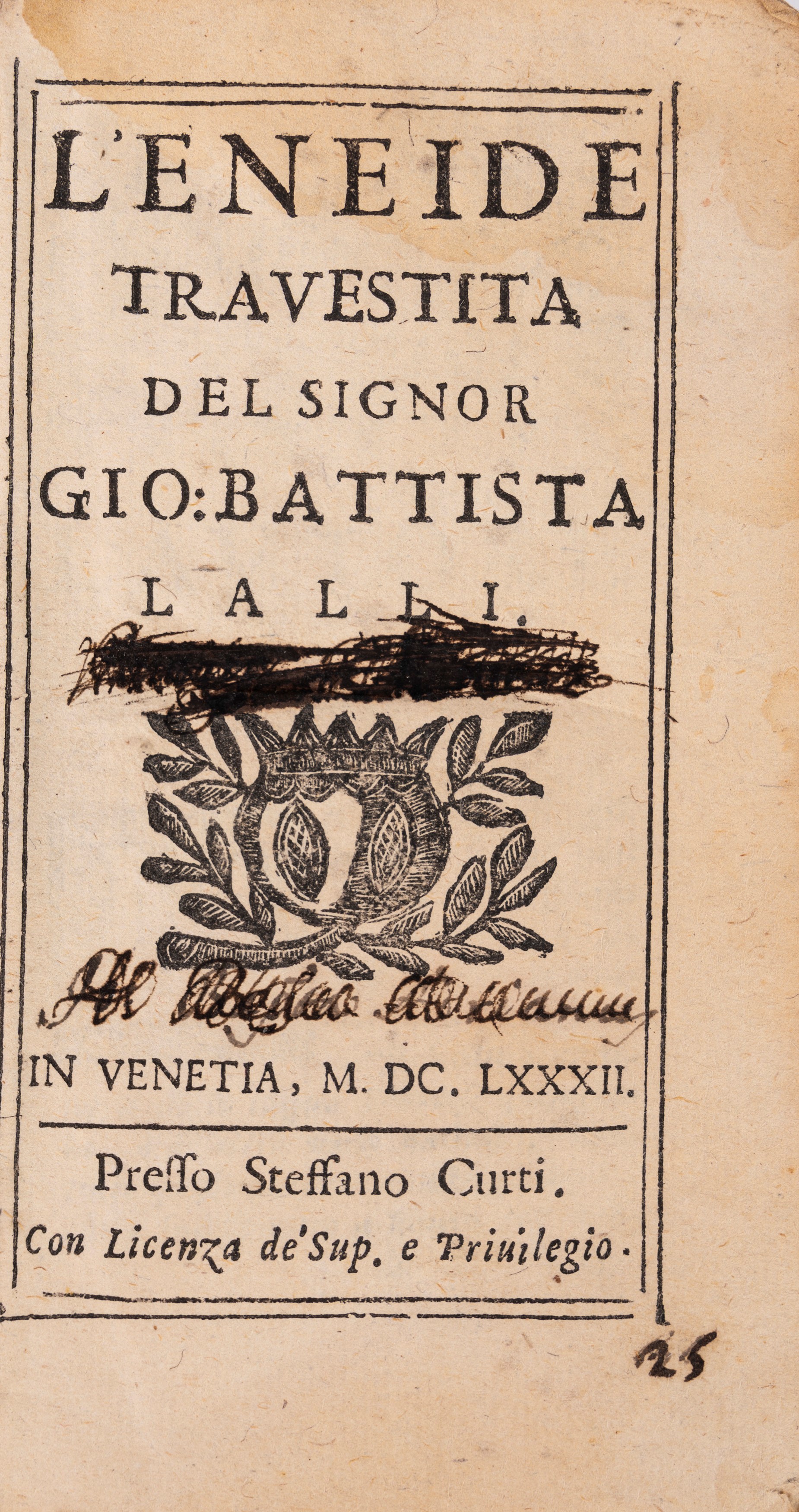 Riscrittura giocosa e parodistica dell'Eneide del poeta originario di Norca Giovan Battista Lalli (1572-1637).